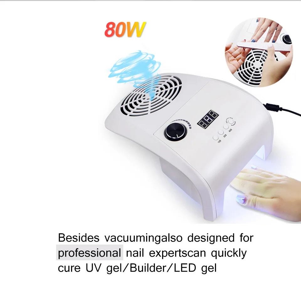 2-в-1 сборщик Сора с & УФ светодиодная лампа для сушки ногтей УФ Сушилка для ногтей пылесос для маникюра