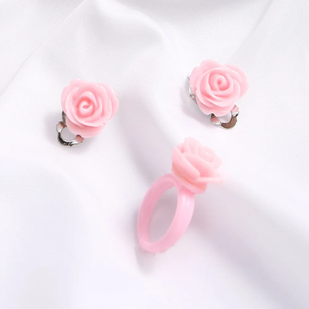 1 комплект, Модный жемчужный цветок, ожерелье, браслет, кольцо, серьги-гвоздики, клипсы для девочек, детский ювелирный набор, подарок