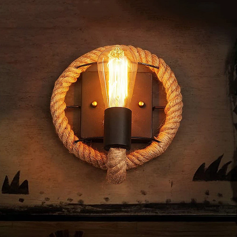 Ретро чердак светодиодный настенный светильник из пеньковой веревки в помещении винтажный E27 промышленный прикроватный бра ресторан коридор столовая крепеж для настенных светильников
