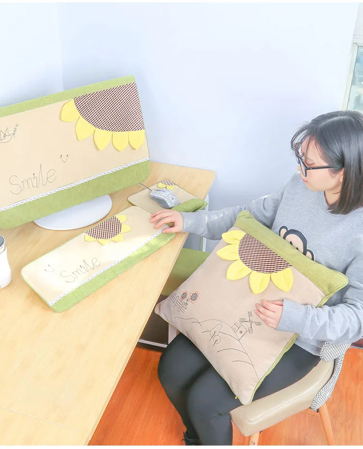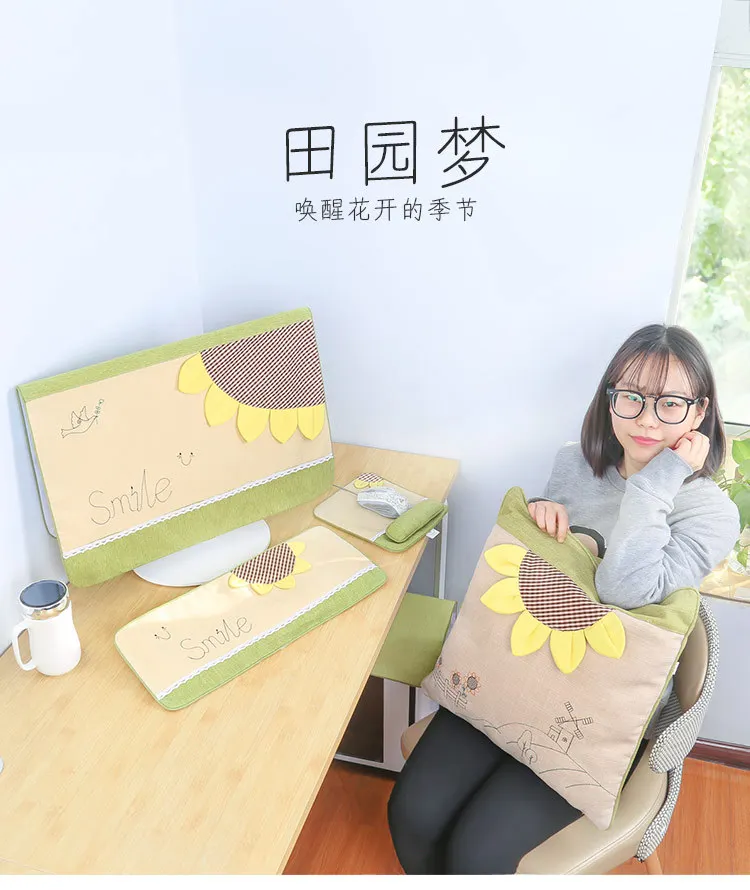 4 шт./компл. настольный ЖК-монитор для компьютера, защитный чехол с подсолнечником, пылезащитный чехол с подсолнечником, хлопковая компьютерная скатерть, домашний декор