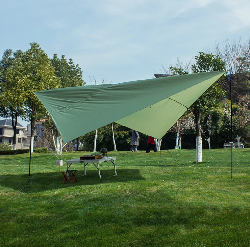 Этот продукт подходит для солнцезащитного и непромокаемого многократного использования и широко используется в парковых пикниках, кемпингах и других сцен. Его также можно использовать как ткань для заземления. Его можно вытянуть по диагонали или под прямым углом. Также может использоваться с треккинговыми полюсами.