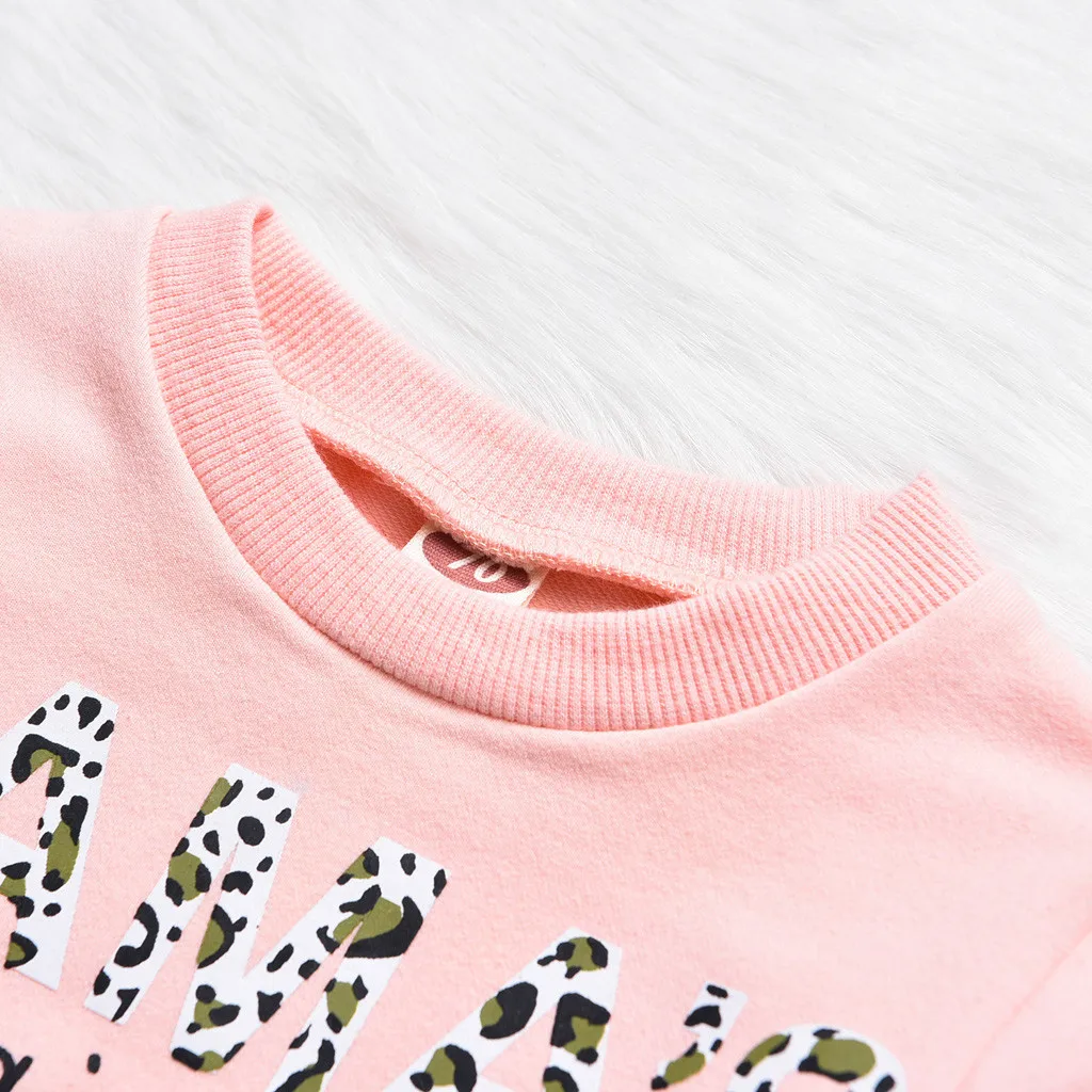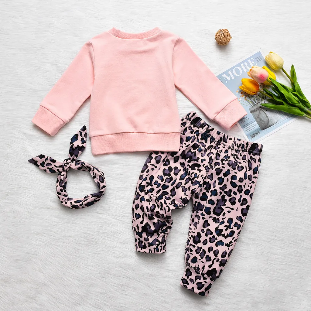 Топы с длинными рукавами и надписью для маленьких девочек, штаны с леопардовым принтом, повязка на голову, комплект одежды