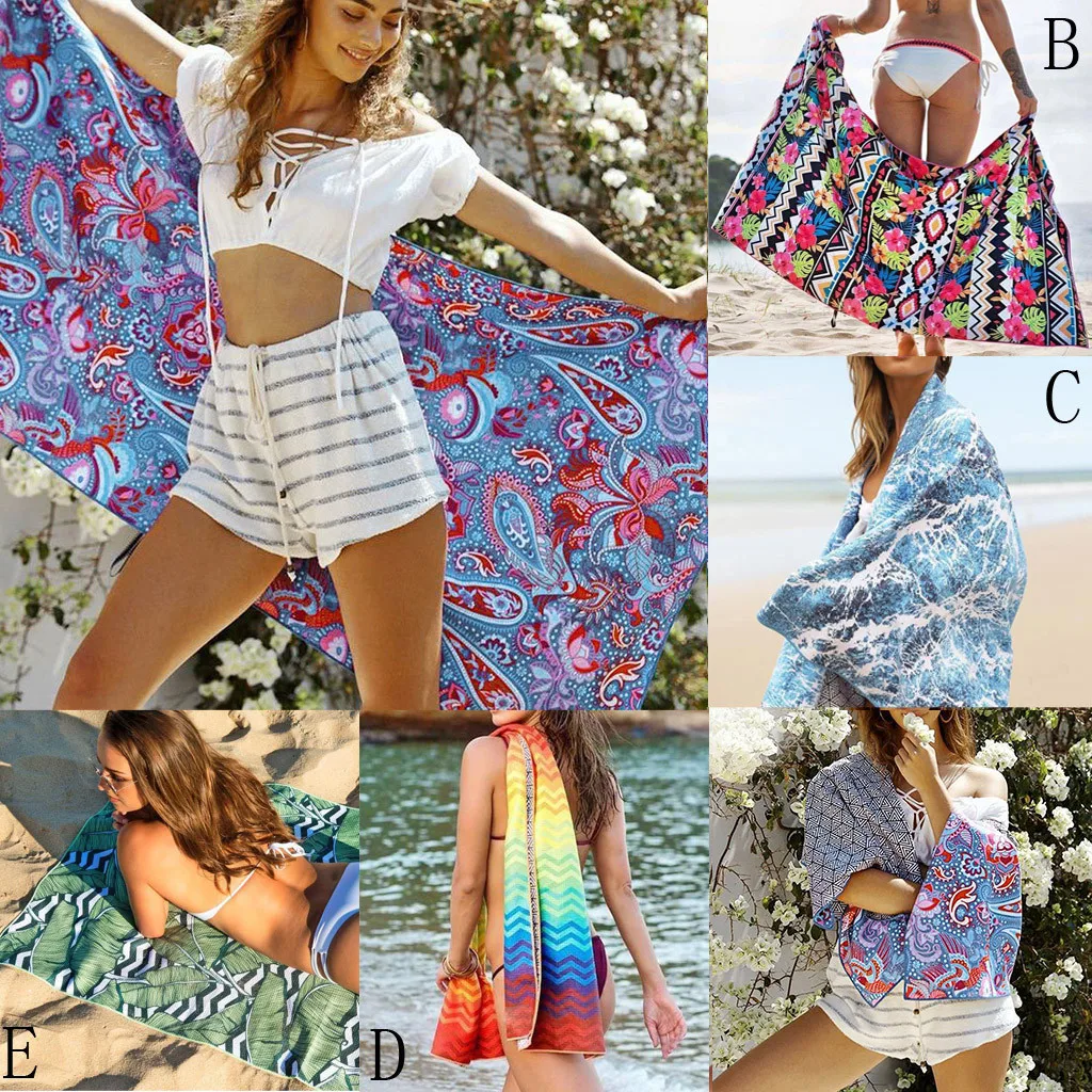 Двойной печатающей головки абсорбент Пляжное полотенце без песка, быстросохнущее покрывало для улицы