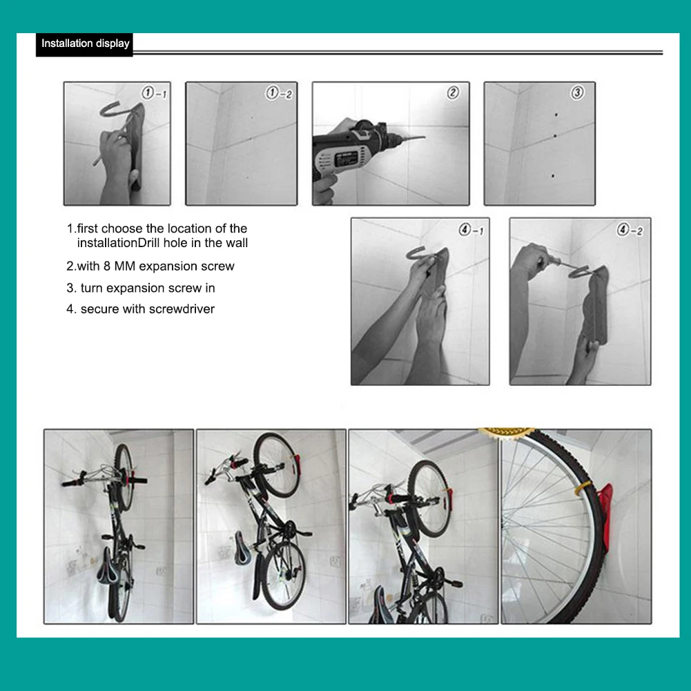 * 1. Высокопрочный стальной велосипедный Крюк можно зафиксировать на стене, чтобы зацепить переднее колесо велосипеда, с лицевой поверхностью велосипедной головки, для парковки велосипедов, экономии места и дисплея велосипеда в велосипедных магазинах