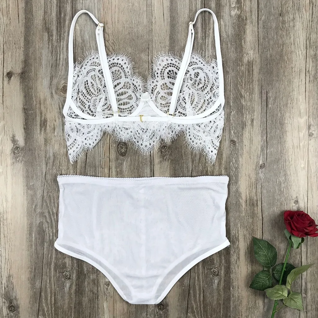Для женщин Сисси кружевное сексуальное женское белье размера плюс Беспроводной бюстгалтер и трусики Комплект S-XL