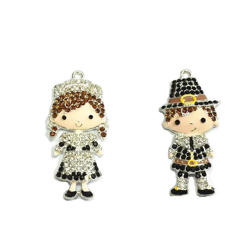 (Выберите дизайн в первую очередь) 10 шт./пакет Рождественский день благодарения с серией персонажей паломник мальчик/девочка Стразы Кулоны из нержавеющей стали