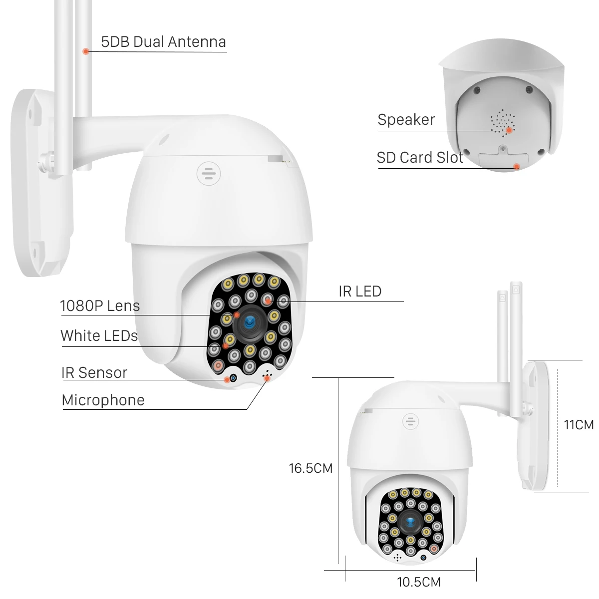 Встроенный 9 шт. белый светодиод и 12 шт. ИК-светодиод, монитор движущихся объектов, автоматически освещает. Это впечатляющее маленькое оружие для борьбы с преступностью.
