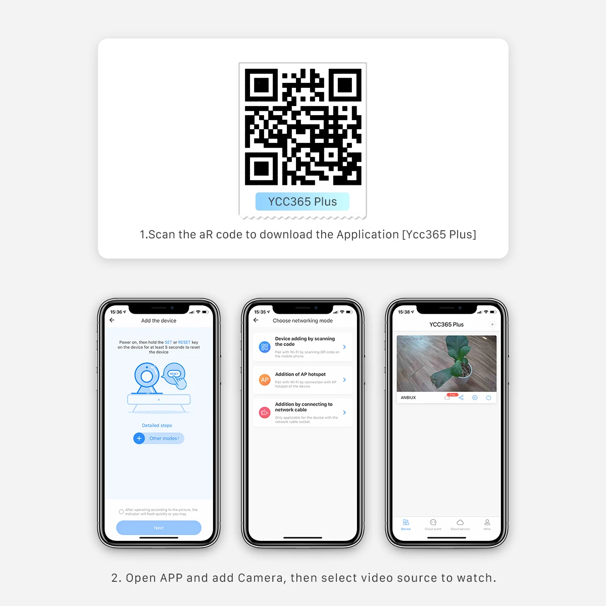 320 ° PTZ панорамирование/наклон вращение по вертикали 90 ° может контролировать угол вращения через приложение YCC365 Plus.
