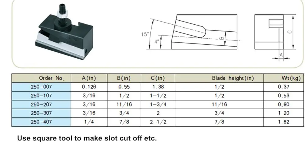 250-007: 1/2 "держатель инструмента с пробором лезвий