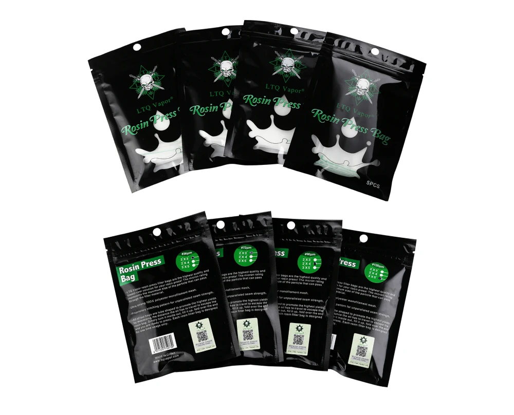 LTQ Vapor канифоли пресс-фильтр мешки являются самым высоким качеством и самой низкой стоимостью решение для вашего канифоли пресс! Микрон рейтинг представляет максимальный размер частиц, которые могут пройти через фильтрующий материал; Сверхпрочная сетка из 100% полиэстера; Фирменная строчка для несравненной прочности шва; Все наши сумки имеют форму трубки, чтобы повысить самые высокие урожаи, минимизируя расстояние, которое масло должно путешествовать, чтобы избежать канифоли. Просто выверните его наизнанку. Сложите конец, и вы готовы нажать. Каждый фильтры из канифоли сумка предназначена только для одноразового использования.