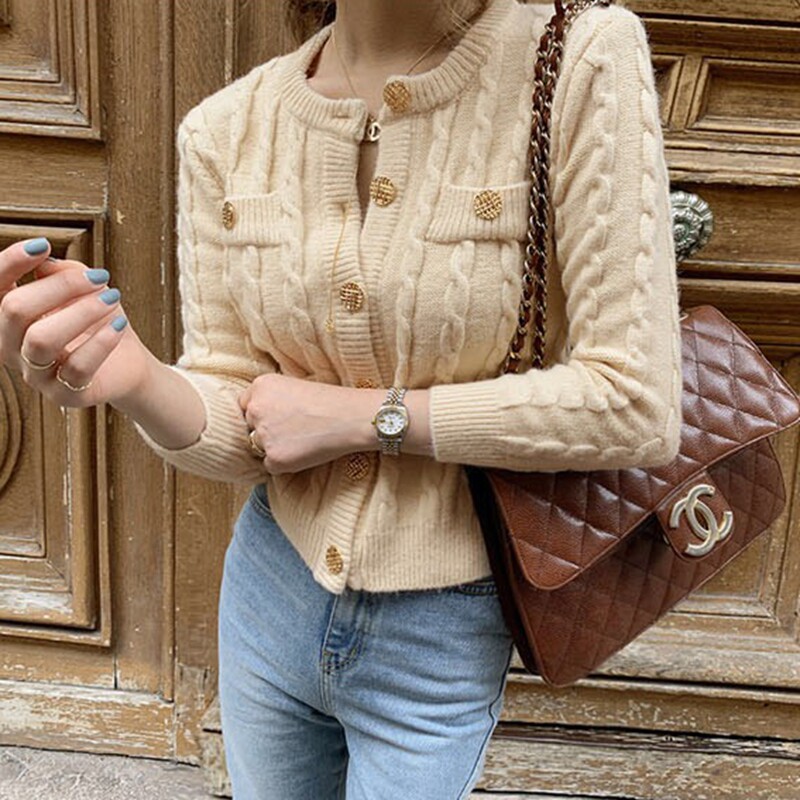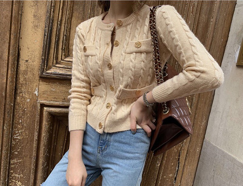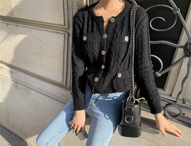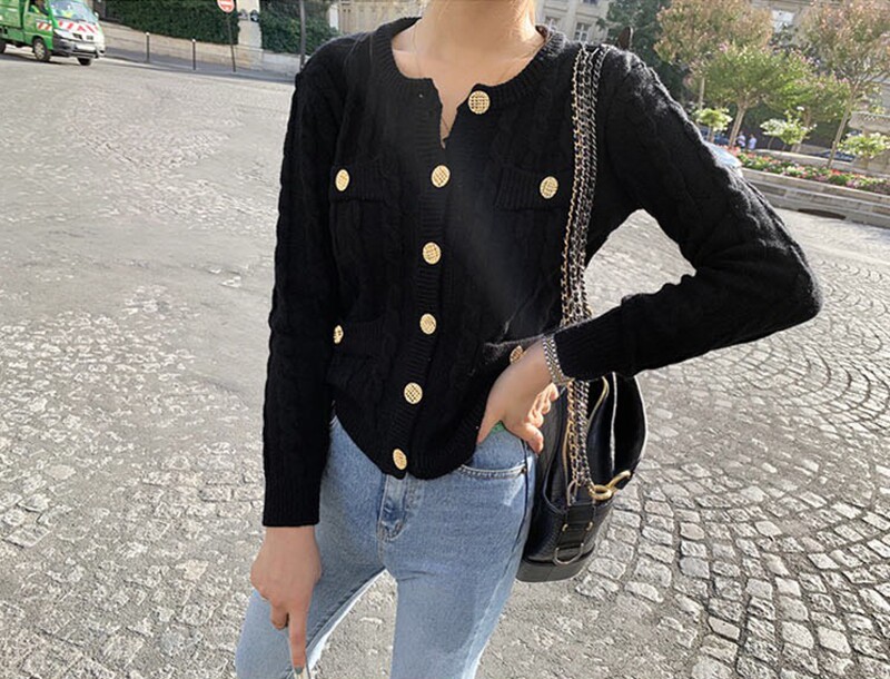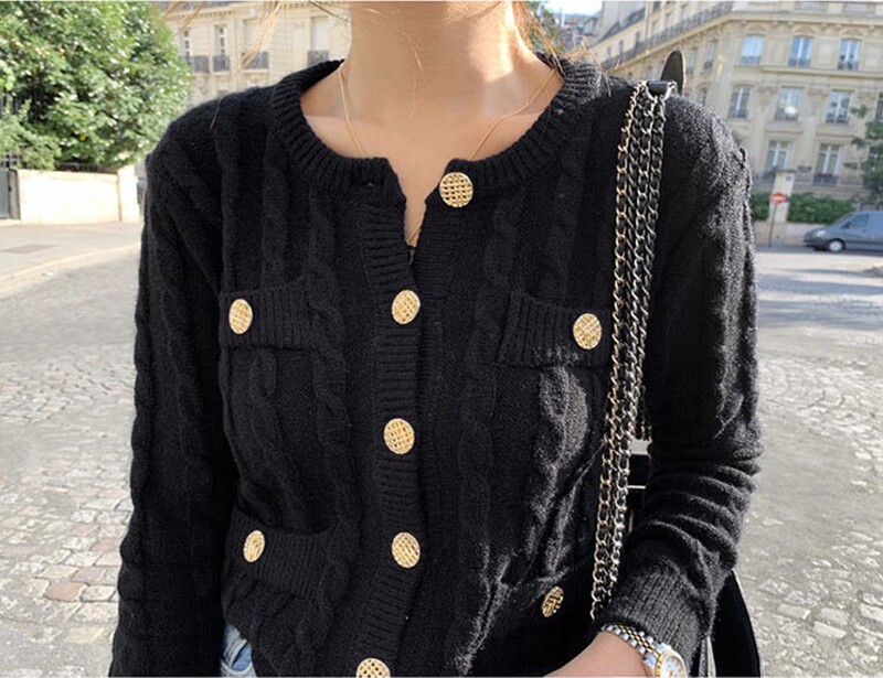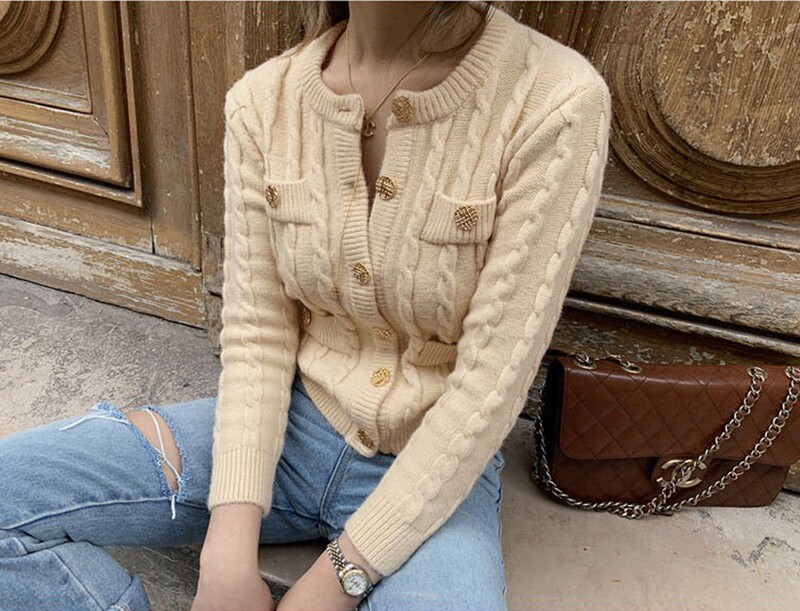 Новинка 2020, Осень-зима, женские свитера, одноцветные топы, женские кардиганы, открытая стежка, вязанные, модные, на пуговицах, с круглым вырезом, DB66