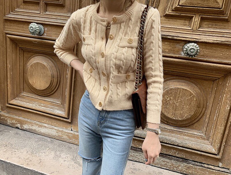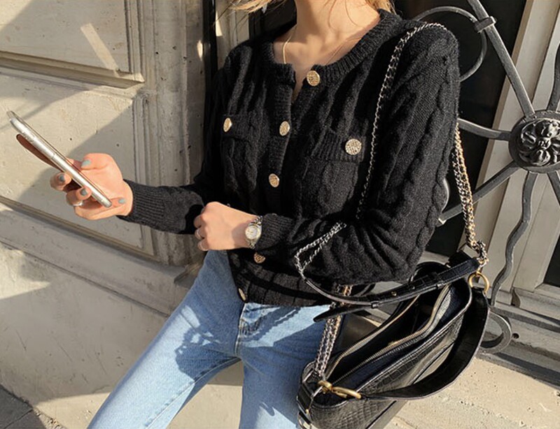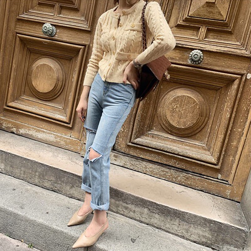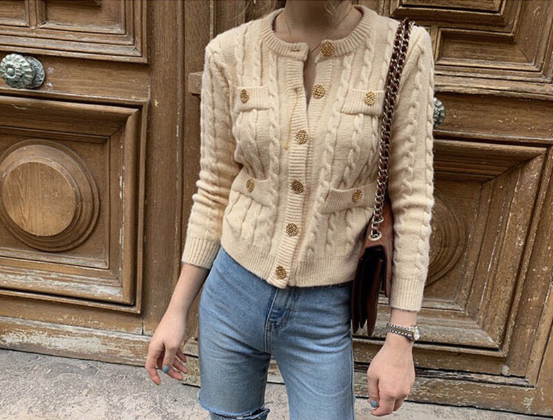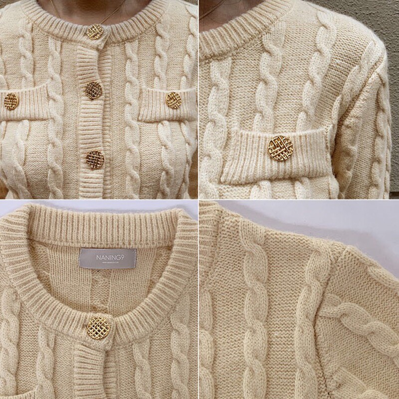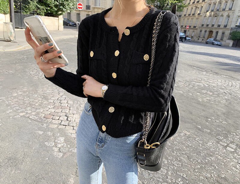 Новинка 2020, Осень-зима, женские свитера, одноцветные топы, женские кардиганы, открытая стежка, вязанные, модные, на пуговицах, с круглым вырезом, DB66