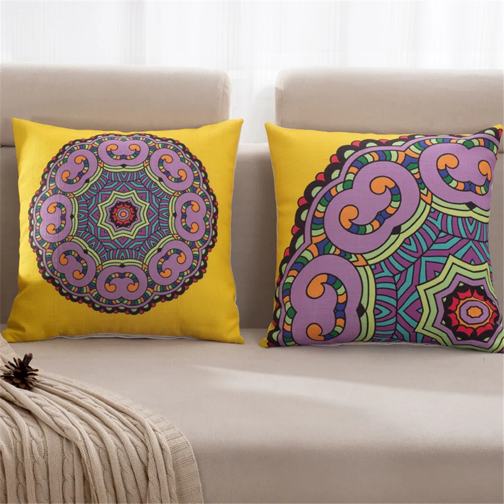 Наволочка с рисунком мандалы, тканая льняная Геометрическая подушка, украшение для дома, диванная декоративная подушка
