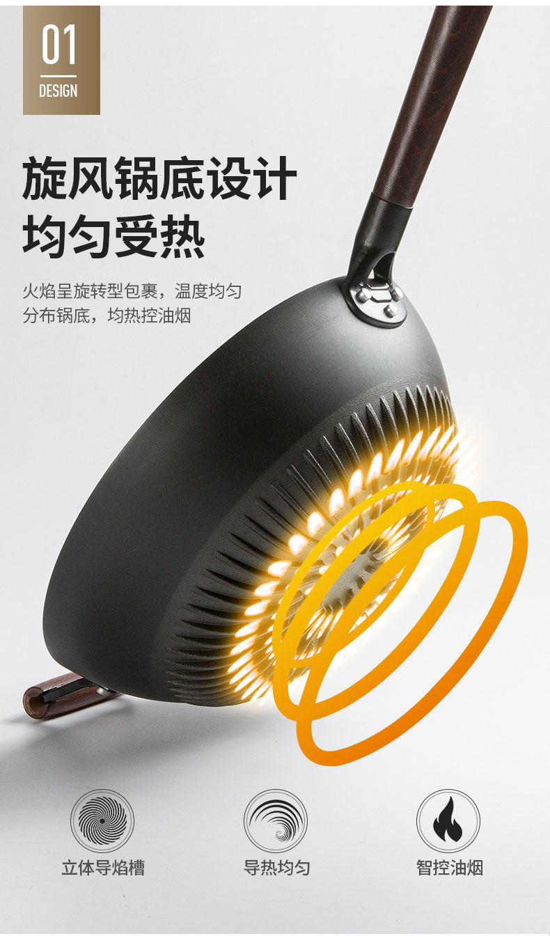 Циклонный дизайн дна кастрюли, пламя обернуто в вращающейся форме, тепло равномерно распределяется на дне кастрюли.