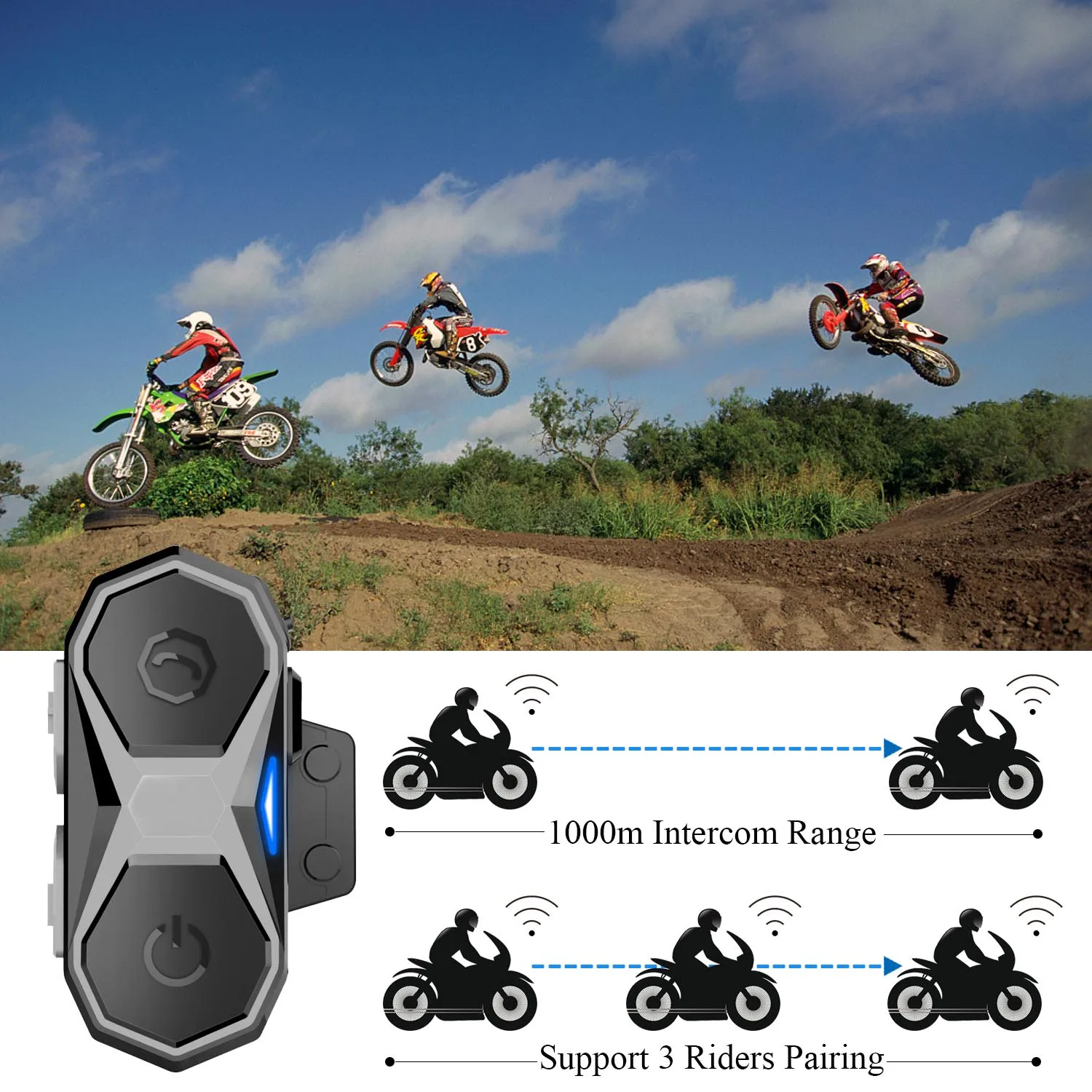 Система BT позволяет максимальное расстояние вызова между двумя гонщиками до 1000 м и поддерживает Сопряжение между 3 гонщиками, 2 гонщиками полный дуплекс говорить одновременно.