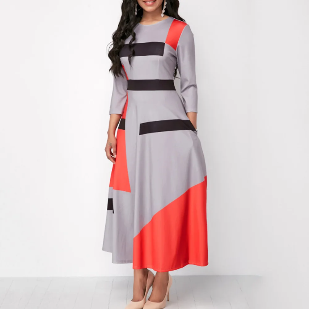 Plus Size Women Pleated Dresses Robe High Waist New African Elegant Printed OL Workwear Office Ladies Pleated Midi Dress