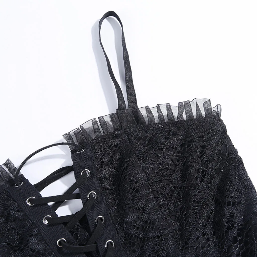 Женские Модные сплошные кружевные лоскутные повязки без рукавов с ремешком в стиле панк Готика