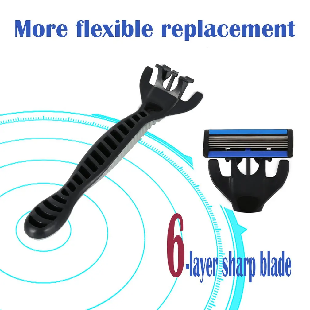 1 + 4 комбо Для мужчин Безопасность классический 6 слоев для бритья волос лезвия бритвы Нержавеющая сталь