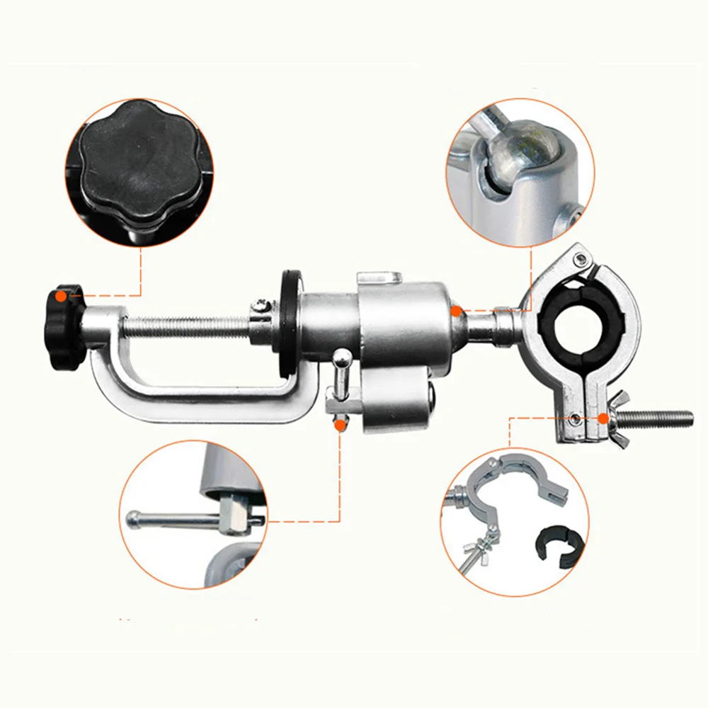 Винтовая сталь, винтовая гайка, зажим на скамейке тиски изготовлены из алюминиевого сплава, который является прочным и прост в эксплуатации, универсальная поддержка повседневного вращения на 360 градусов.