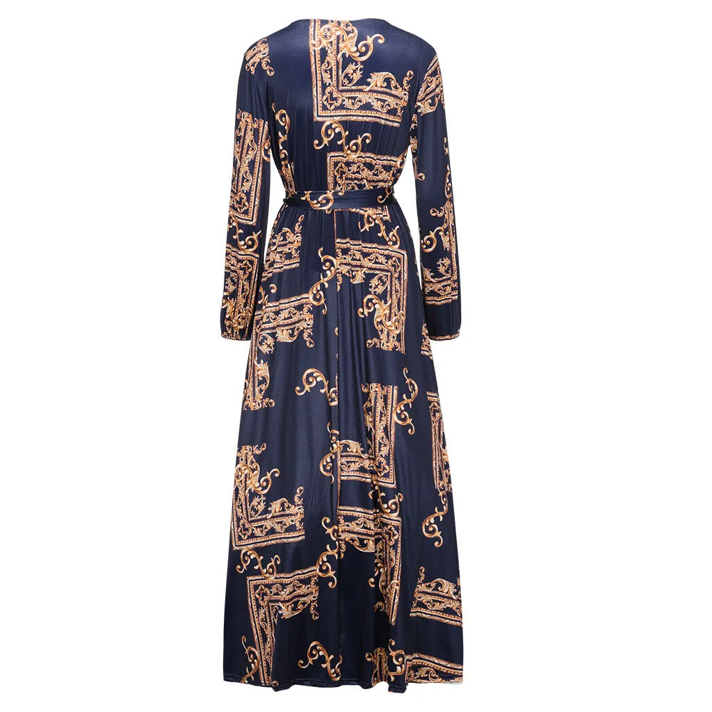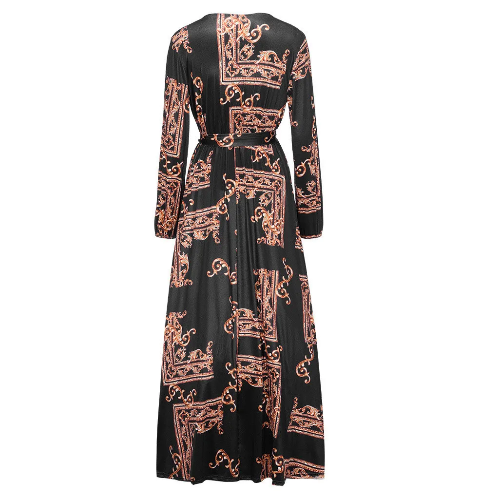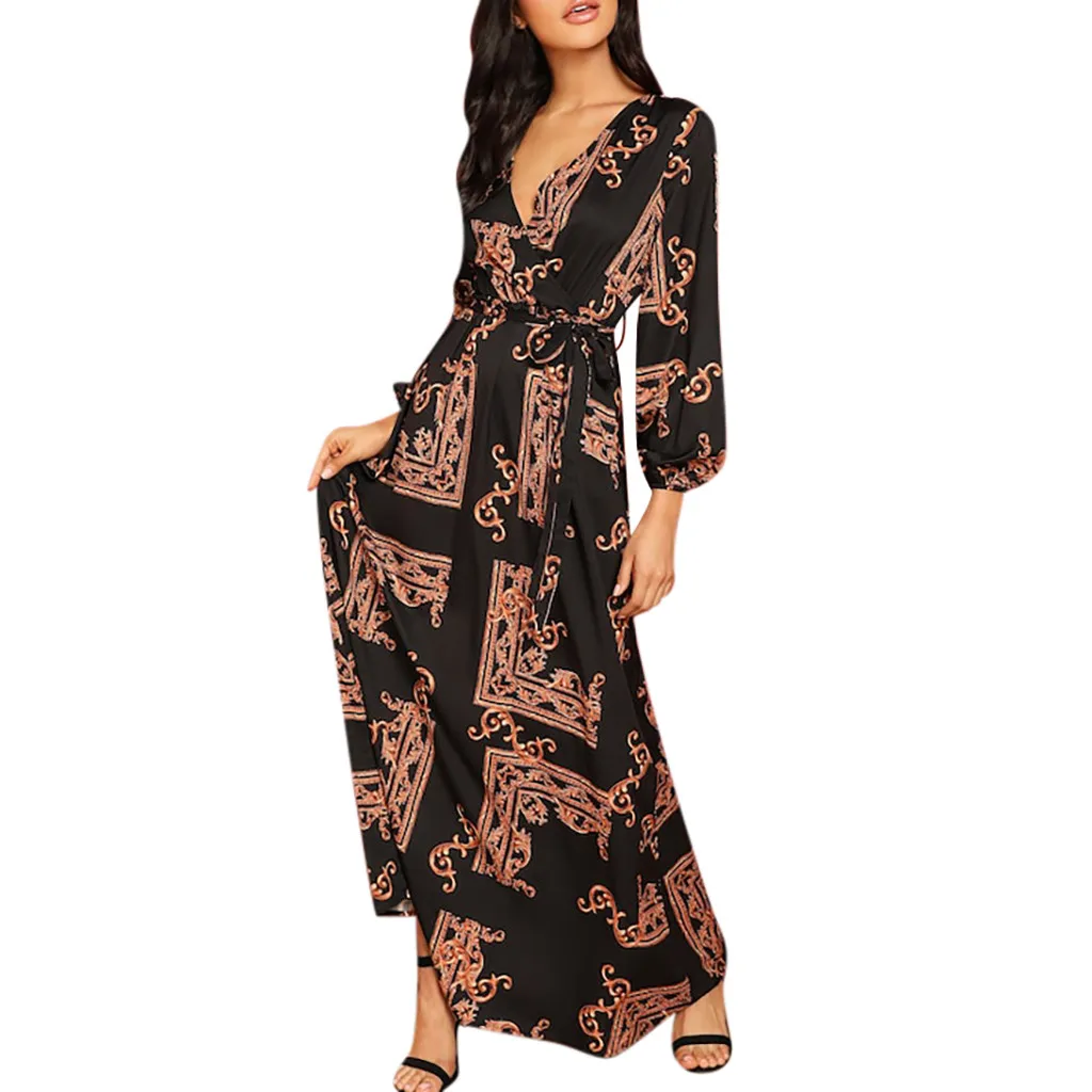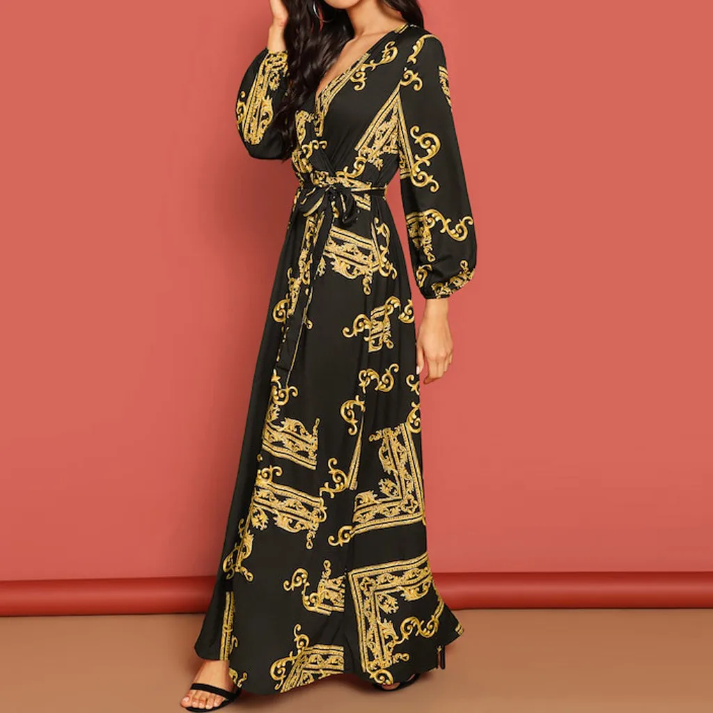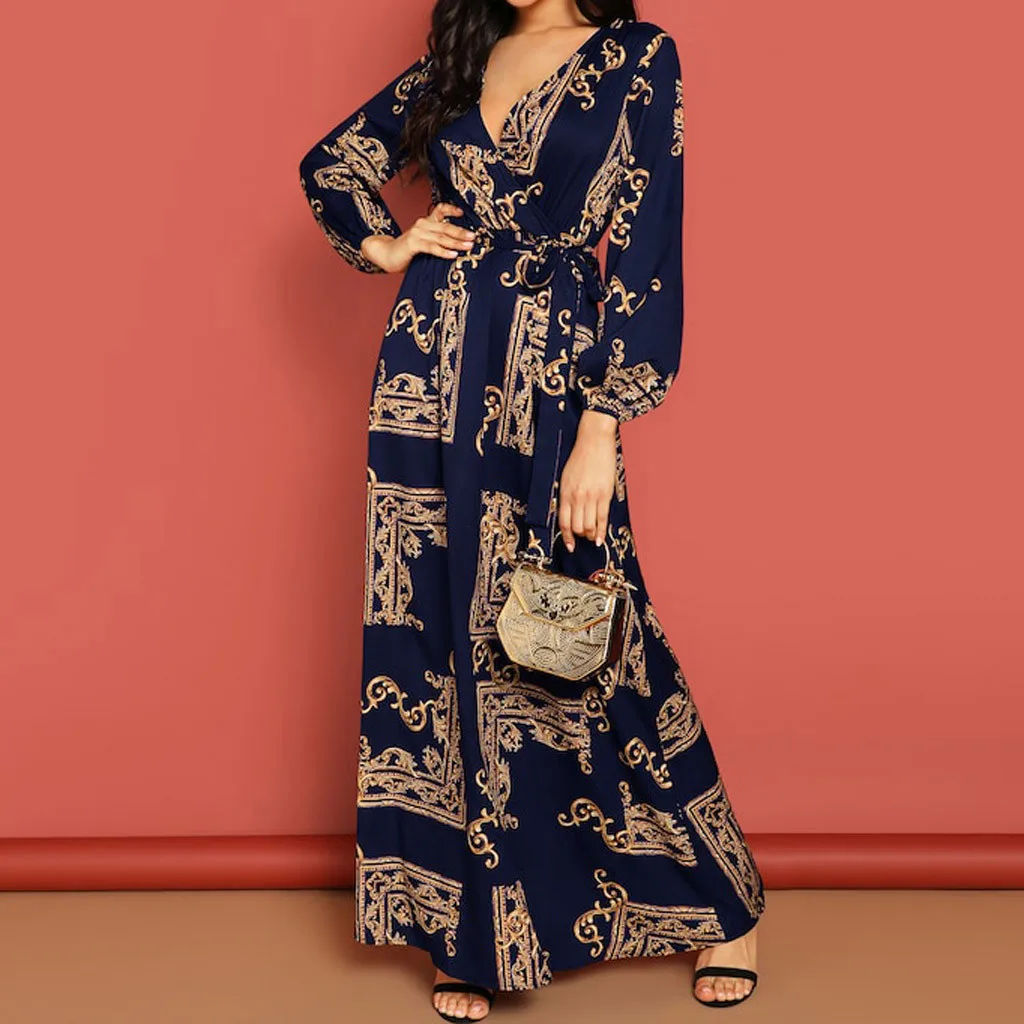 Особенности: винтажное платье с принтом, v-образным вырезом, длинными рукавами, макси-платьем, рукавами-фонариками, длинное платье, винтажный стиль, платье с запахом, осенне-весеннее платье.