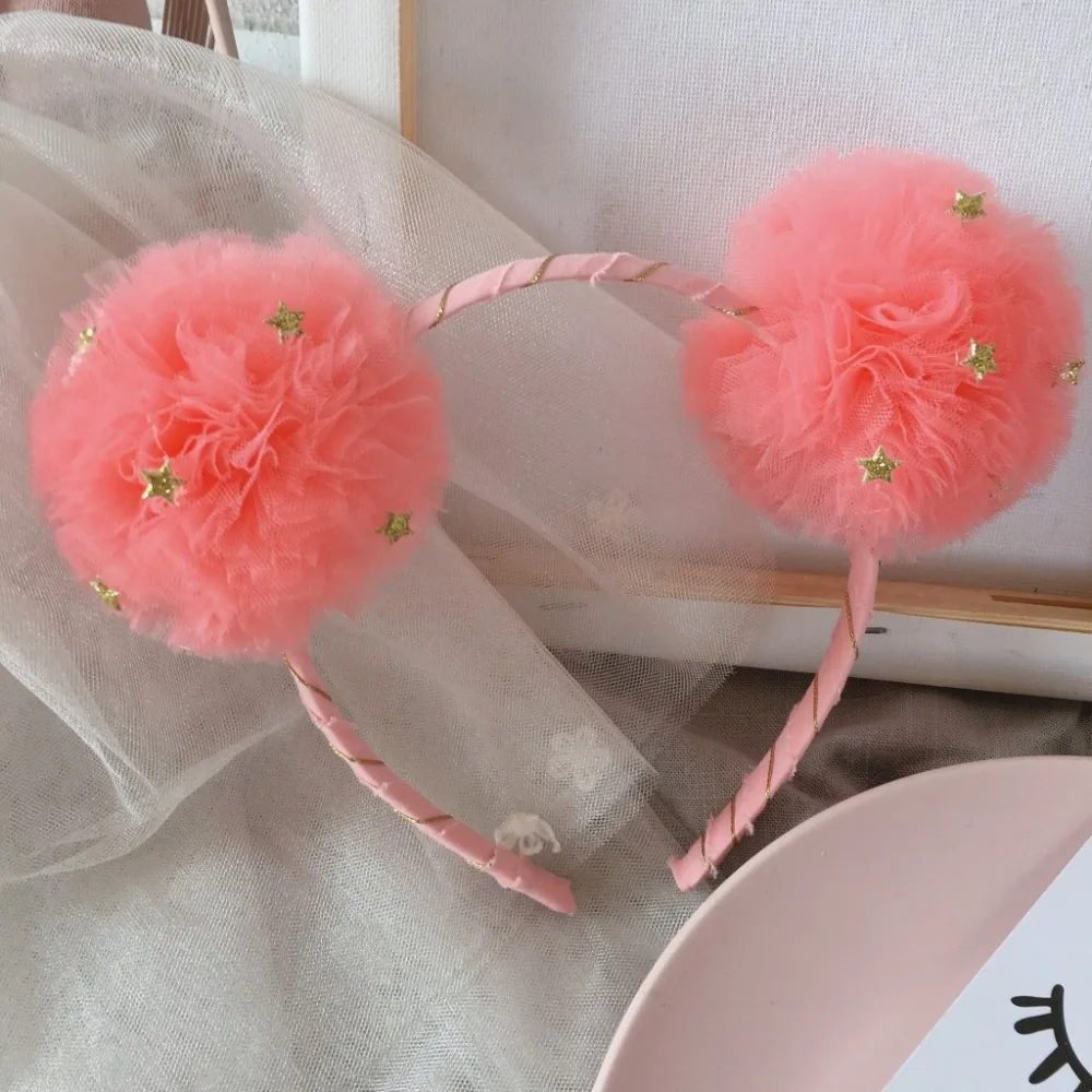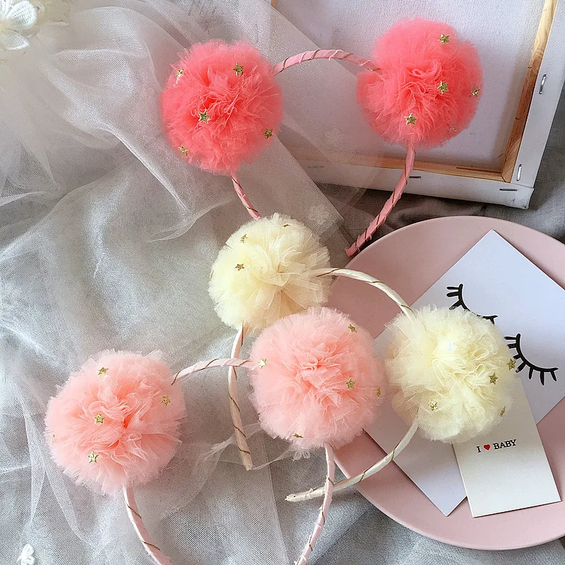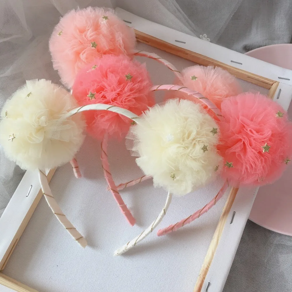 Бутик 12 шт модные милые большие марлевые помпоны ободки для волос блестящая Звезда уши животных палочки для волос принцесса головные уборы аксессуары для волос