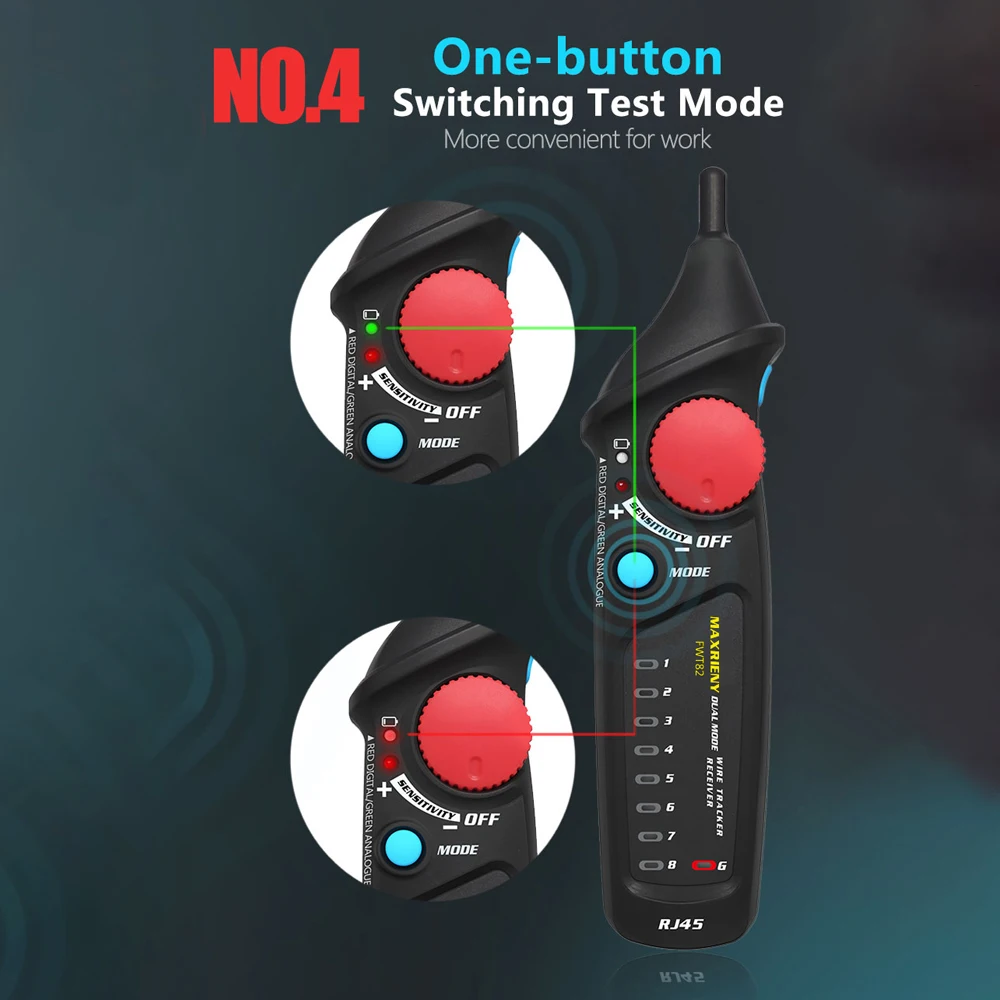 Скорость сортировки сетевого кабеля регулируется: скорость сортировки сетевого кабеля для этого проводного трекера регулируется. При регулировке режима быстрой скорости, он может сэкономить ваше рабочее время по сравнению с другим проводным трекером, который не может регулировать скорость.