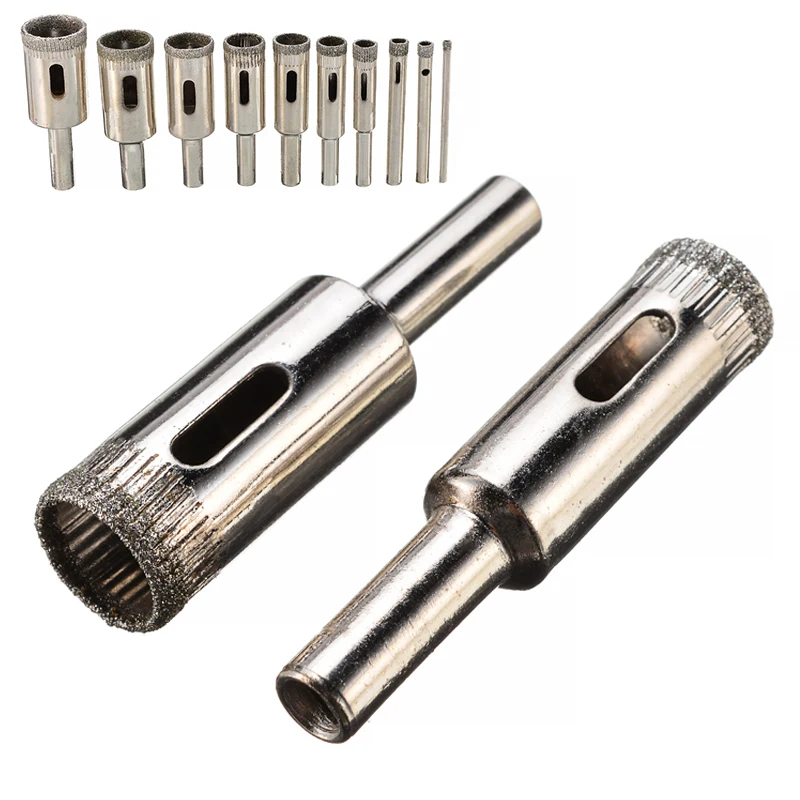 Может удалять полный круг из стекла, плитки, мрамора, гранита, керамики или других