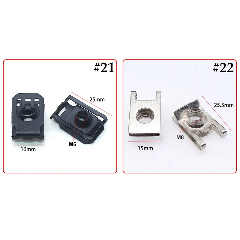 Описание товара: Высококачественные автомобильные аксессуары, обычно используются для установки боковых юбок, бампера и другой отделки. Идеально подходит для крепления или фиксации проводов и кабелей на автомобильной двери или приборной панели. Широко используется для автомобильного крыла, бампера, двери, боковой юбки или другой поверхности кузова автомобиля. Идеально подходит для замены изношенных, поврежденных или сломанных зажимов, легко устанавливается. U-гайка-это застежка, состоящая из двух лоскутов в форме зажима с двумя внешними приподнятыми формами резьбы. Конструкция этой гайки означает, что При затягивании прилагается двойная эластичная сила. Эту гайку можно держать на месте вручную При затягивании. Для крепления u-образных гаек не требуется никаких специальных инструментов, и их можно собрать гораздо быстрее и легко, чем обычные гайки. Функция самофиксации означает, что можно избежать дорогостоящих операций, таких как нарезание резьбы, сварка или заклепка. Его также можно использовать с хрупкими материалами, такими как стекло, пластик или эмалированные поверхности. В этих случаях устойчивость гайки позволяет избежать трещин или повреждения области нанесения. Эта гайка фиксируется с затягивающимися torques гораздо ниже, чем для стандартных гаек из-за своей большой эластичности. Он обычно устанавливается на кромке панели, но также может использоваться в прямоугольном монтажном отверстии в середине панели. U-гайки обеспечивают прочную и надежную фиксацию для приложений, где две или более панелей требуют удержания вместе. Типичные приложения включают в себя автомобили, бытовые приборы, электрическое оборудование и оборудование. Используется для отделки дверей, накладок крыши, внутренних дверных панелей, панелей приборов и т. д. Посылка: 20 шт. u-образные крепежные зажимы для автомобиля Универсальные