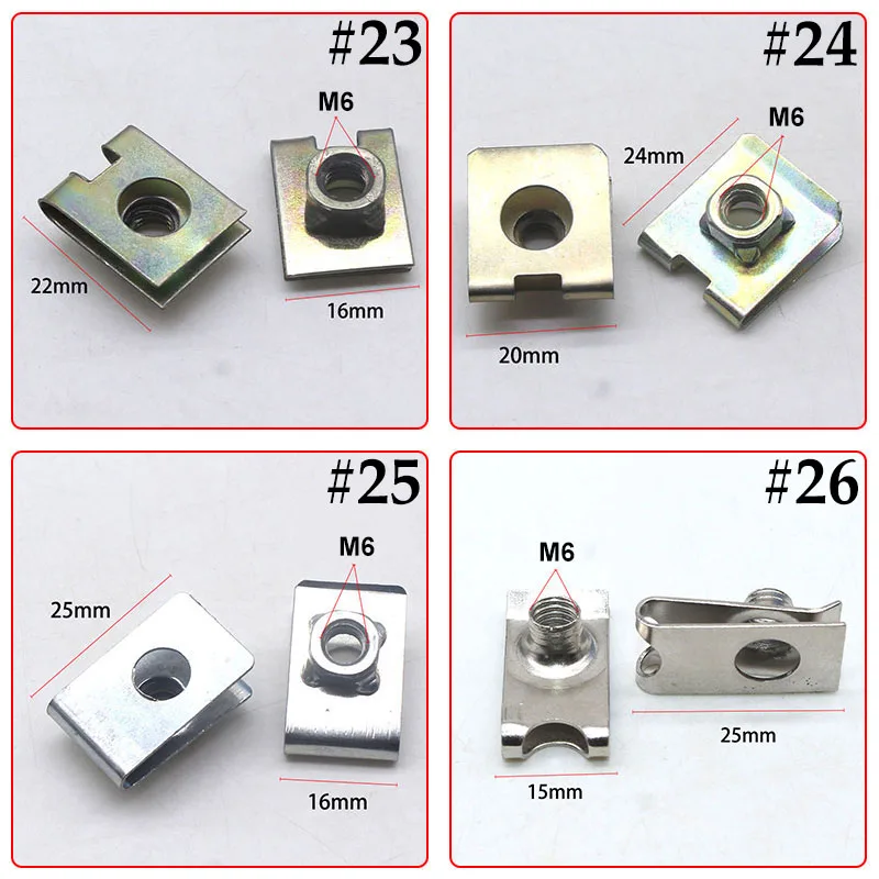 Описание товара: Высококачественные автомобильные аксессуары, обычно используются для установки боковых юбок, бампера и другой отделки. Идеально подходит для крепления или фиксации проводов и кабелей на автомобильной двери или приборной панели. Широко используется для автомобильного крыла, бампера, двери, боковой юбки или другой поверхности кузова автомобиля. Идеально подходит для замены изношенных, поврежденных или сломанных зажимов, легко устанавливается. U-гайка-это застежка, состоящая из двух лоскутов в форме зажима с двумя внешними приподнятыми формами резьбы. Конструкция этой гайки означает, что При затягивании прилагается двойная эластичная сила. Эту гайку можно держать на месте вручную При затягивании. Для крепления u-образных гаек не требуется никаких специальных инструментов, и их можно собрать гораздо быстрее и легко, чем обычные гайки. Функция самофиксации означает, что можно избежать дорогостоящих операций, таких как нарезание резьбы, сварка или заклепка. Его также можно использовать с хрупкими материалами, такими как стекло, пластик или эмалированные поверхности. В этих случаях устойчивость гайки позволяет избежать трещин или повреждения области нанесения. Эта гайка фиксируется с затягивающимися torques гораздо ниже, чем для стандартных гаек из-за своей большой эластичности. Он обычно устанавливается на кромке панели, но также может использоваться в прямоугольном монтажном отверстии в середине панели. U-гайки обеспечивают прочную и надежную фиксацию для приложений, где две или более панелей требуют удержания вместе. Типичные приложения включают в себя автомобили, бытовые приборы, электрическое оборудование и оборудование. Используется для отделки дверей, накладок крыши, внутренних дверных панелей, панелей приборов и т. д.