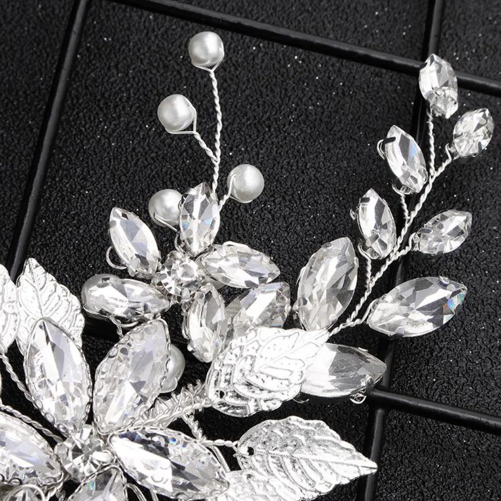 Измерение: 15 см * 7 см, 23 г Материал: сплав, искусственный жемчуг, хрусталь, стразы, листья