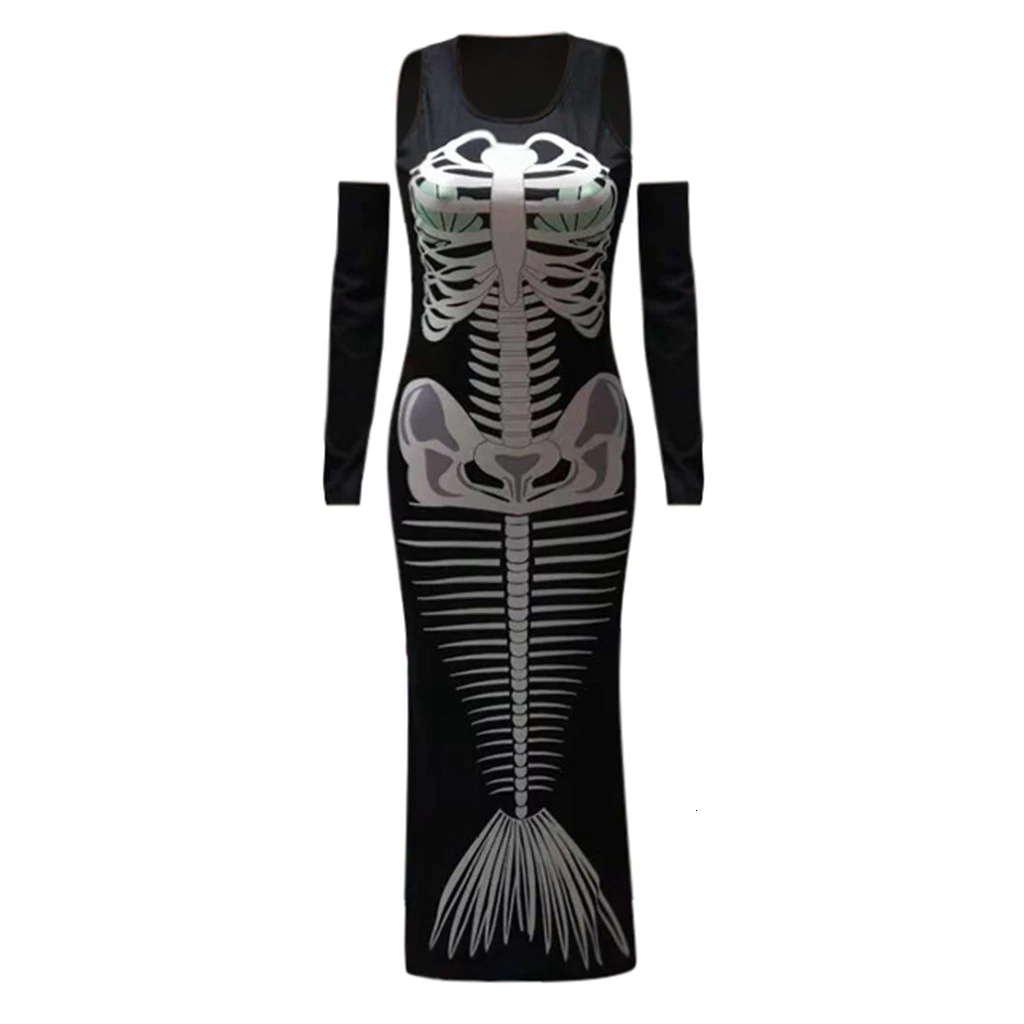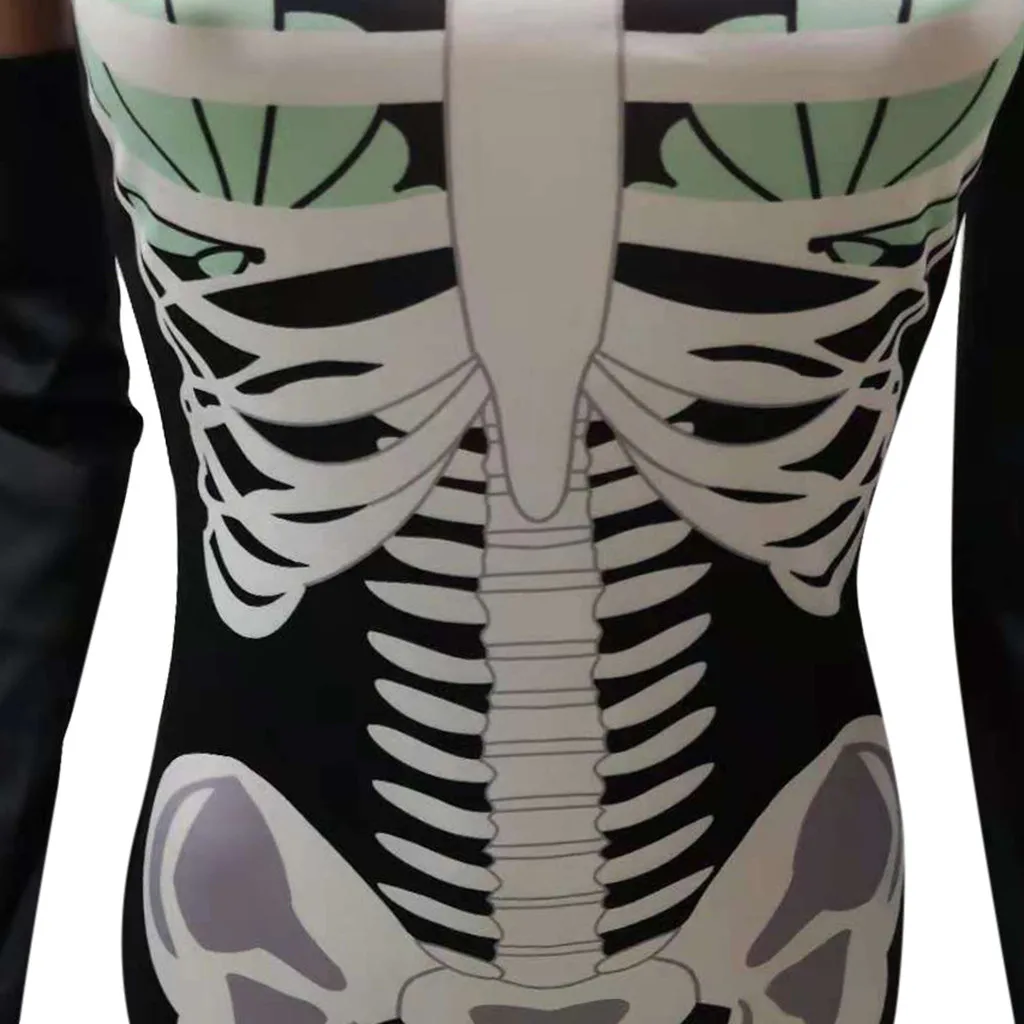 Модный женский костюм для косплея на Хэллоуин с круглым вырезом и принтом черепа. Длинное платье