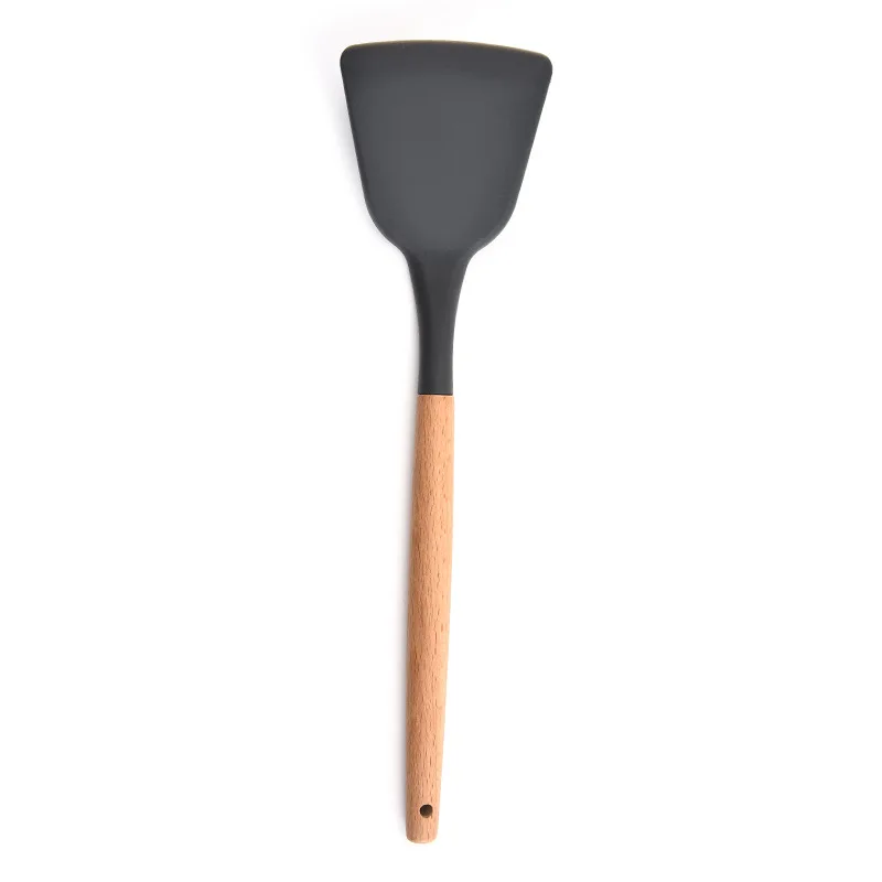 Набор кухонной посуды, силиконовая кухонная утварь с деревянными ручками, антипригарная кухонная утварь, набор кухонных гаджетов, полные кухонные инструменты с держателем,