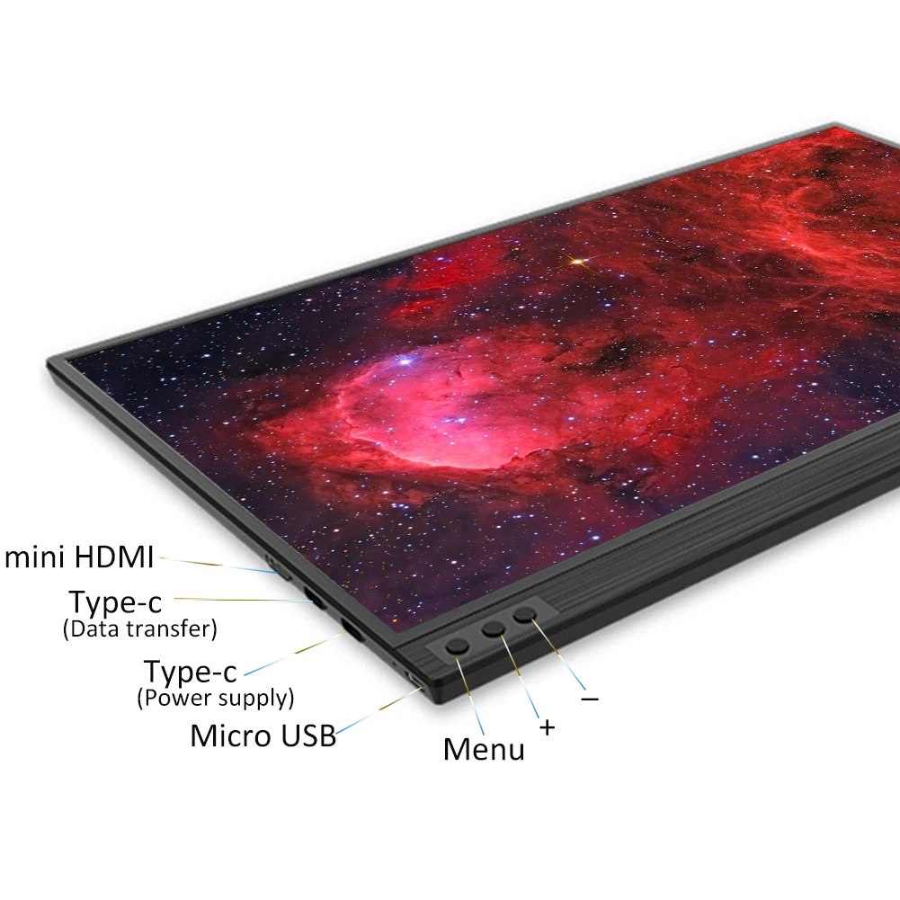 Название продукта 15,6 inch монитор Динамик Встроенный Разрешение 1920x1080 Мощность питания 5V2A Размеры 15,6 дюймов Частота обновления 60 Гц Измерение 356x224x10mm VESA Нет Сенсорный экран Не прикасаться Взимать плату за другим устройством Не поддерживает Вес Около 750 г Разъем для наушников Нет Интерфейс Mini HDMI, Type-c Размер обзора защитного / ТВ-приставка Не поддерживает USB-C поддержка модели TNT, EMUI PC, DEX