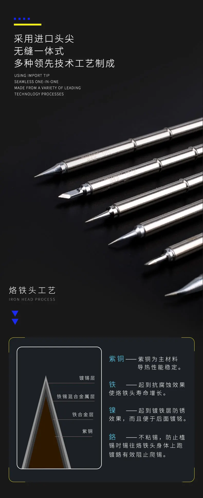 Он сделан из импортного наконечника, бесшовный интегрированный и много ведущих технологий
