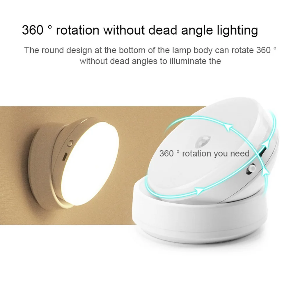 Ночник с поворотом на 360 градусов, светильник с датчиком движения, светильник в спальню, коридор, светильник, на батарейках, зарядка через USB, ночник