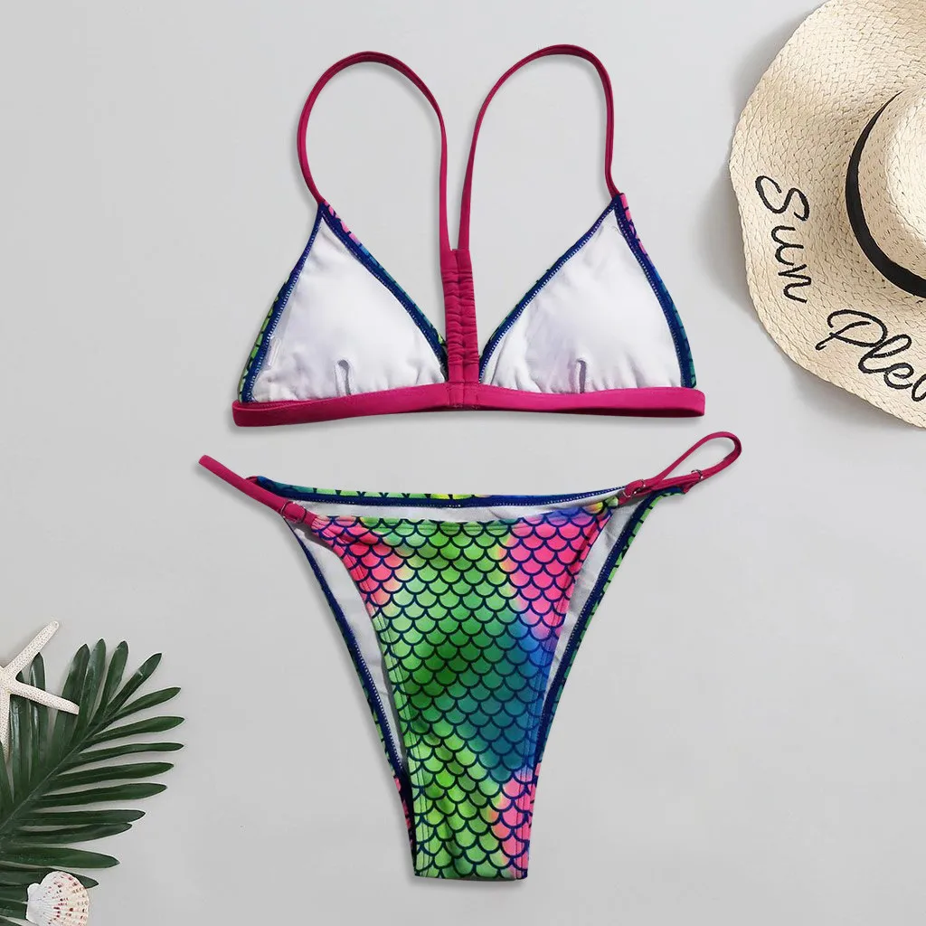 Женские бразильские бикини градиентной расцветки с принтом рыбьей чешуи, пляжная одежда