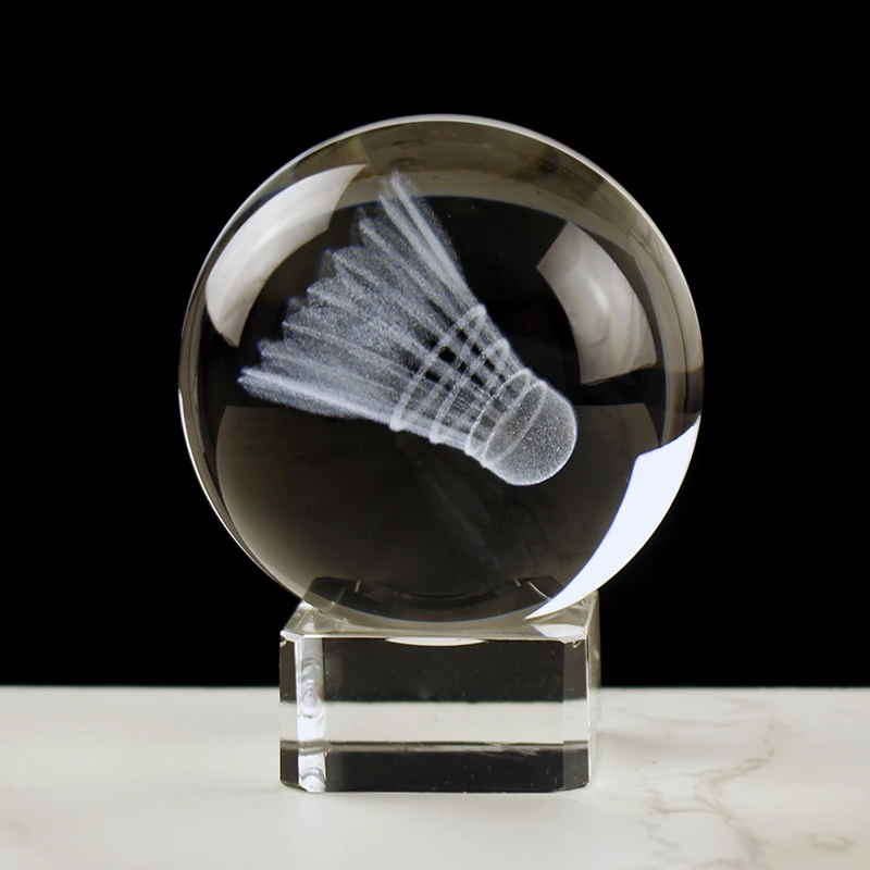 Характеристики: 3D лазерный бадминтон внутри. Это очень милое украшение комнаты для любителей спорта.