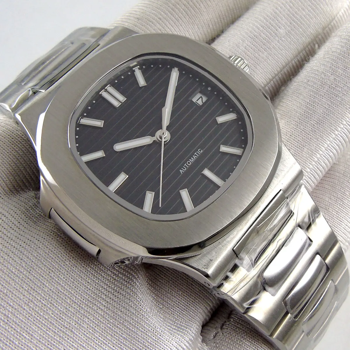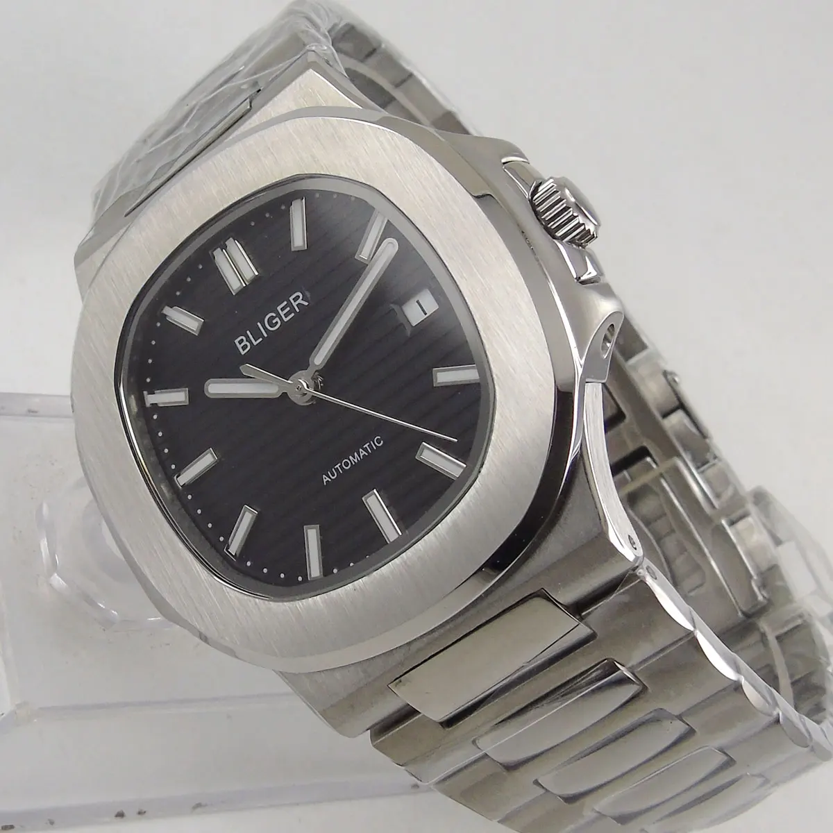 ● Механизм: автоматический (с автозаводом) механизм ● Циферблат: черный циферблат (вы можете выбрать циферблат) ● Диаметр корпуса: 40 мм ● Толщина корпуса: 11,5 мм ● Материал корпуса: матовый корпус из нержавеющей стали 316L ● 3atm Водонепроницаемость ● Ремешок: резиновый ремешок 316L с раскладывающейся застежкой ● Стекло: сапфировое стекло