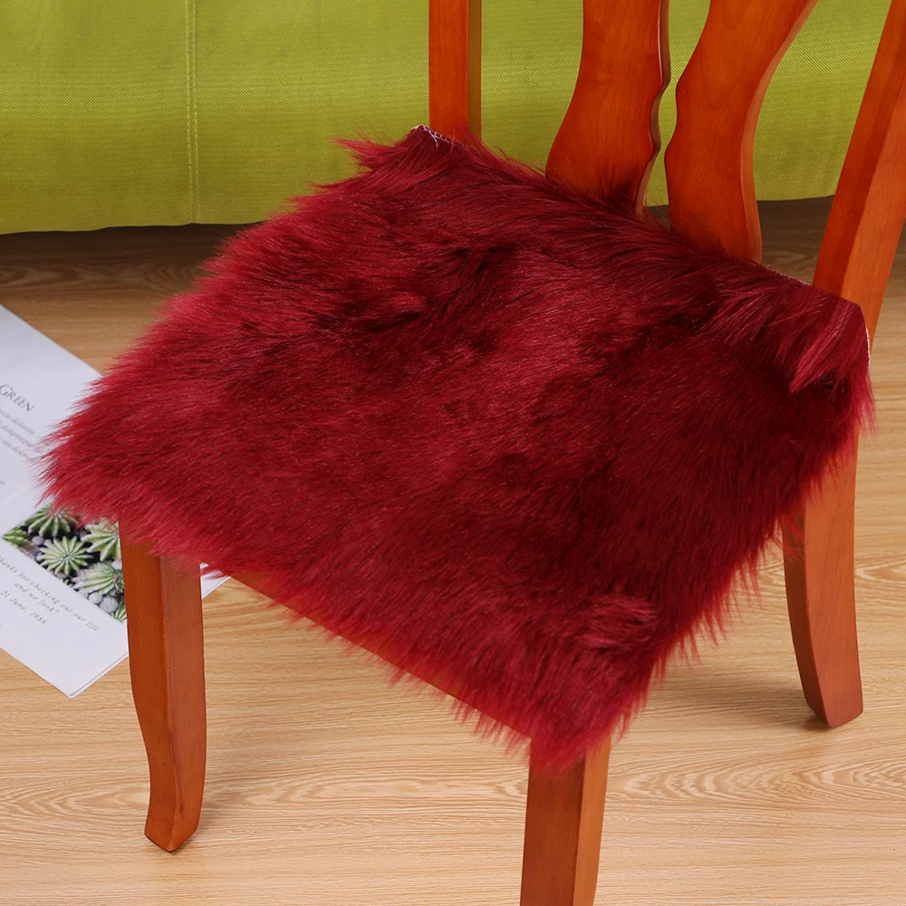 Квадратный Чехол для стула из овчины с искусственным мехом, подушка для сиденья, подкладка из теплого меха, простые пушистые коврики, моющиеся для гостиной и спальни, диван