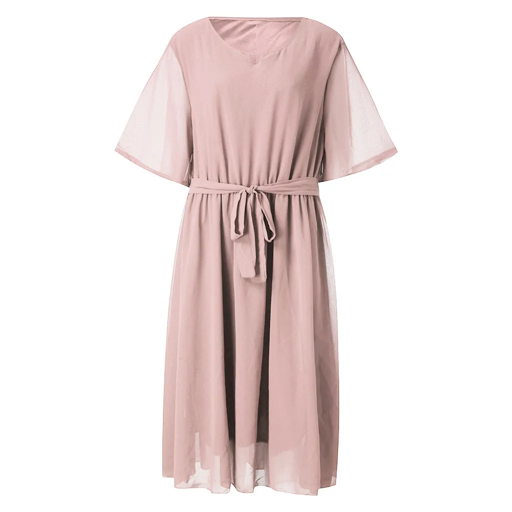 Womens Plus Size Casual O Neck Half Sleeve Knee Length Dress Party Dress