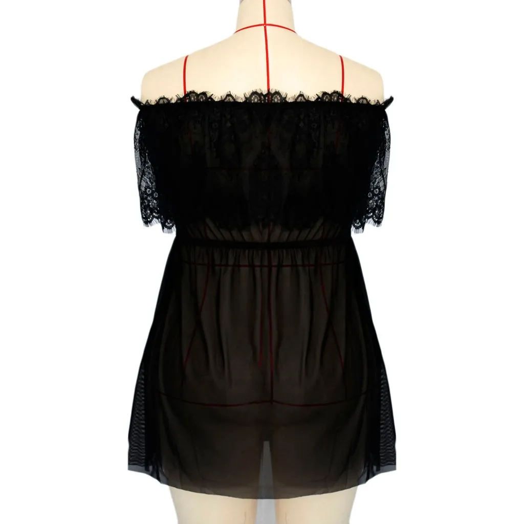 Мода женщин плюс размер кружева Прозрачное нижнее белье в сетку с открытыми плечами ночная рубашка 1XL-4XL