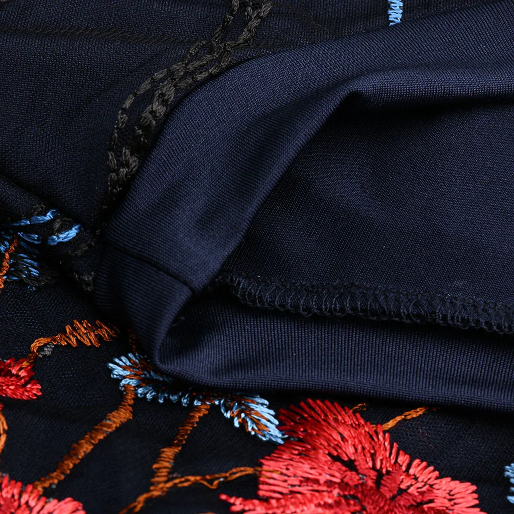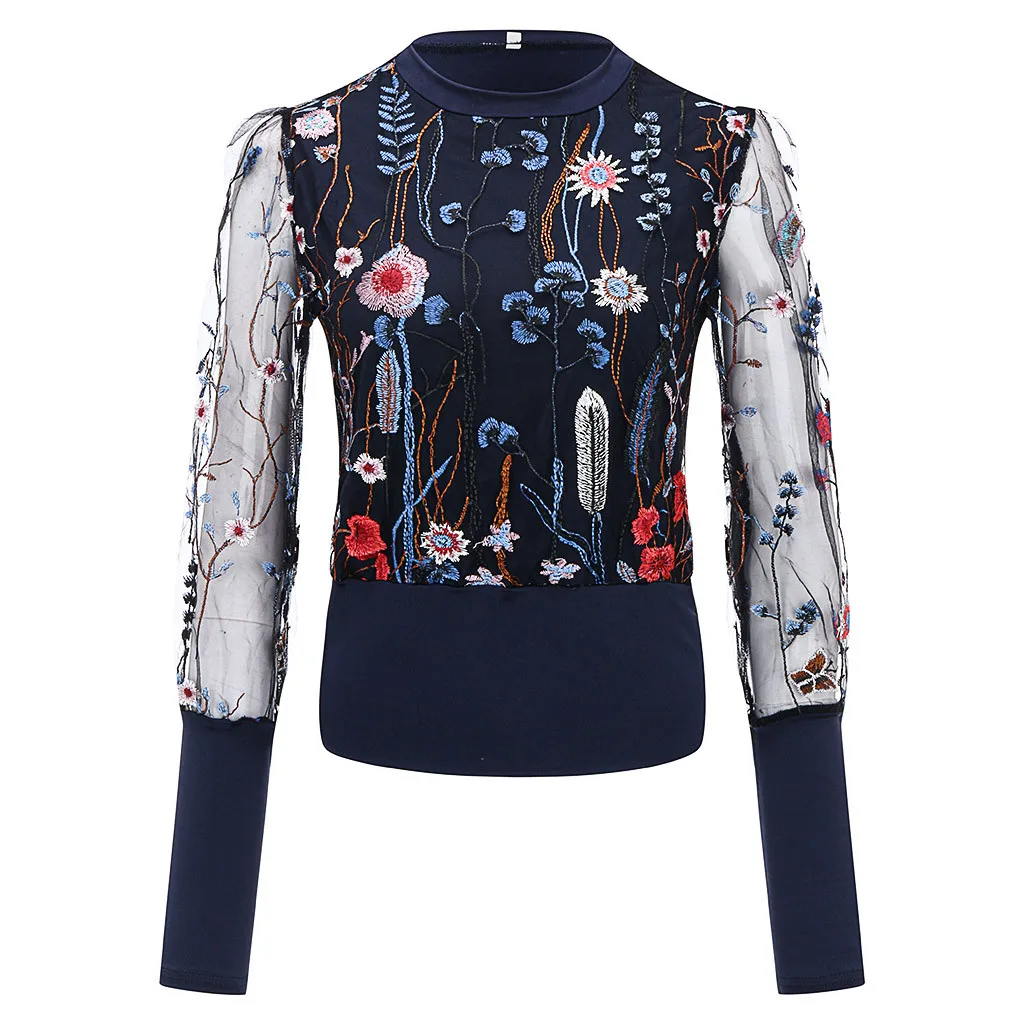 Модная женская блузка с круглым вырезом и длинными рукавами с цветочной вышивкой