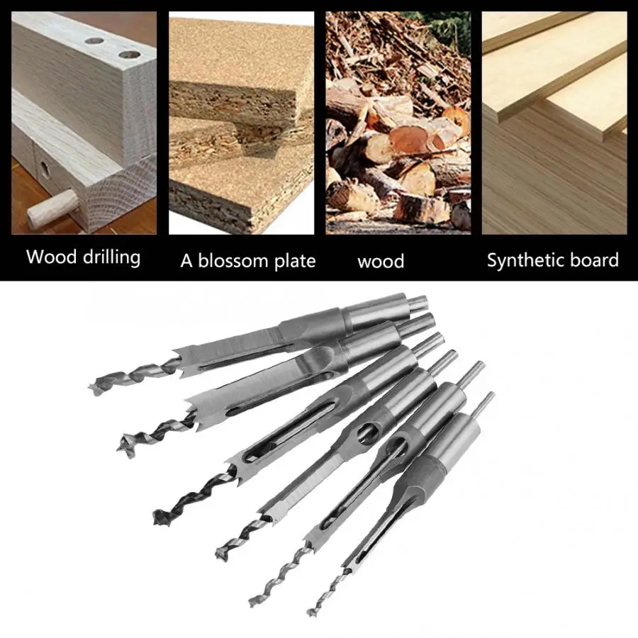 Это Получит двойной эффект благодаря совместимому использованию с врезной и теневой машиной, Для пробивки квадратных отверстий необходимо использовать электродрель, перфоратор и др. Инструменты. 6 штук в упаковке с различным диаметром отверстия для удовлетворения ваших потребностей. Отличный аксессуар для резки, резки и деревообработки.
