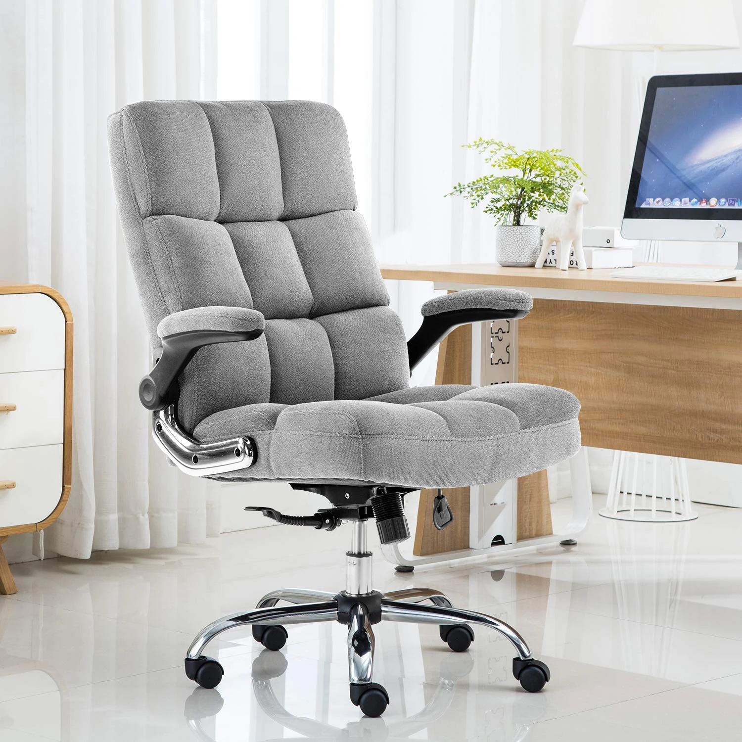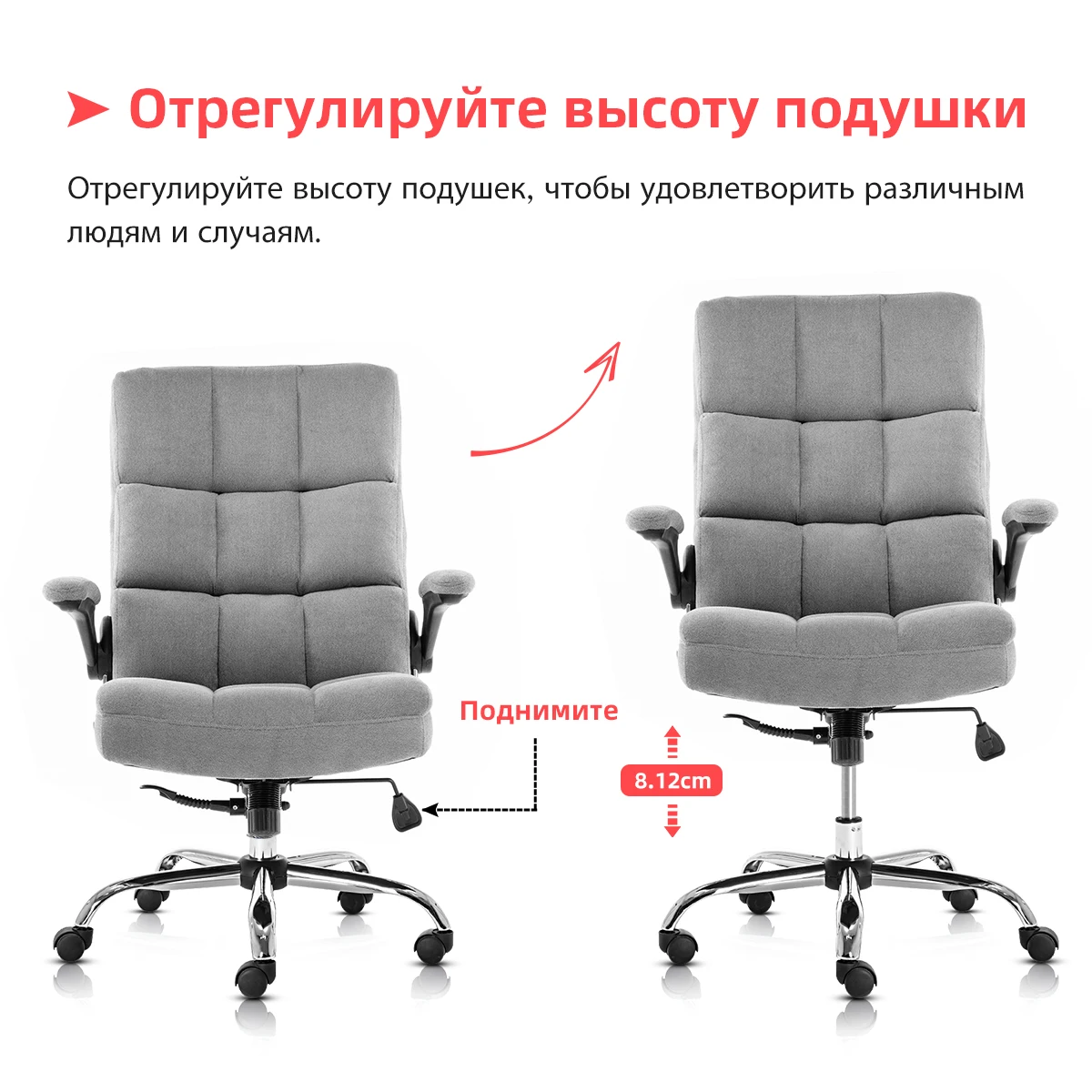 -Общая Регулируемая высота: 108,97 ~ 119,13 см -Размеры сиденья: 47,498 см (вес) x 50 см (длина) -Размеры спинки: 50 см (вес) x66см (длина) -Вес: 19 кг -Максимальная емкость: 280 фунтов (127 кг) -Материал: мягкая ткань и Нетоксичная пена высокой плотности -Материал корпуса: взрывозащищенный лоток и хромированная пятизвездочная основа и нейлоновые ролики с капюшоном