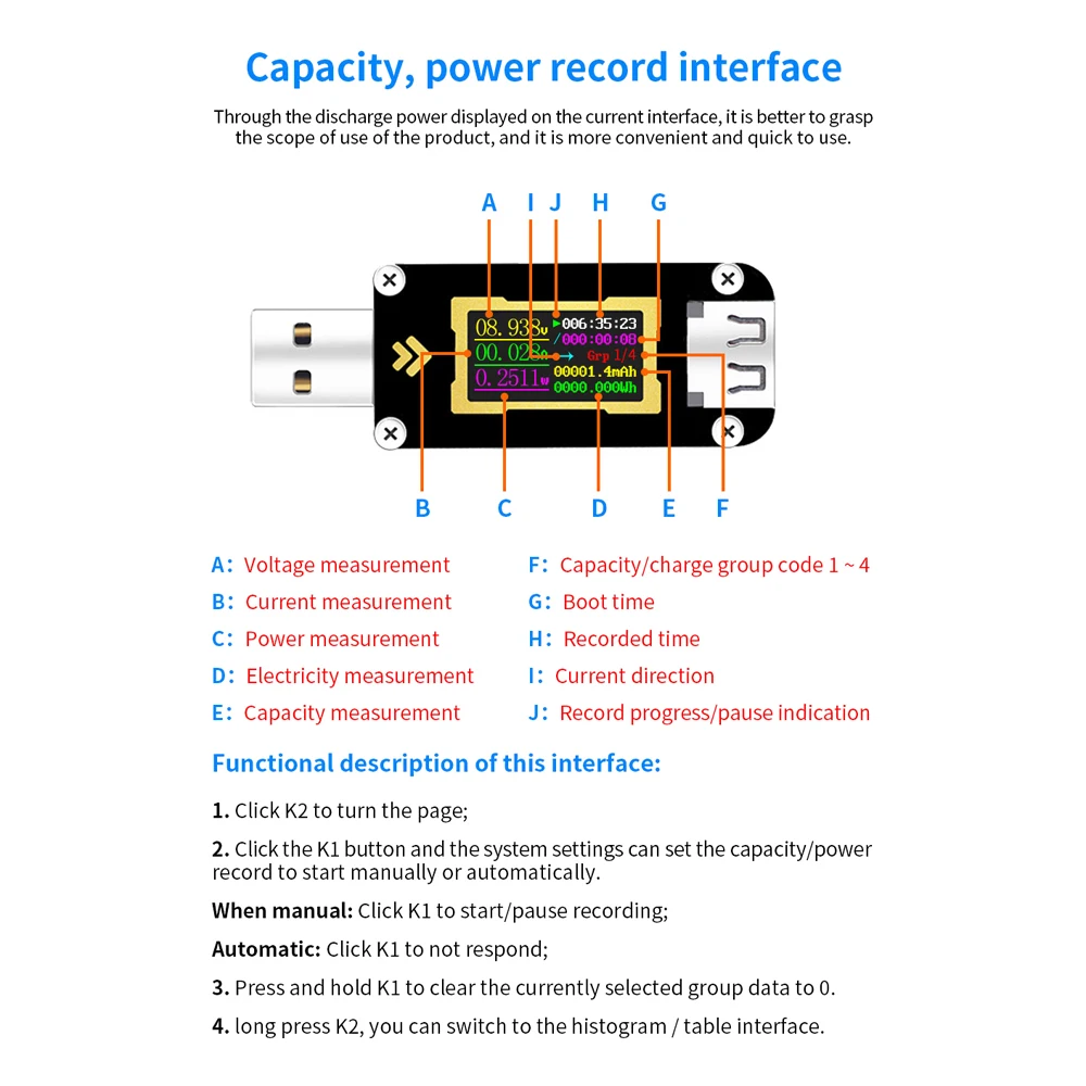 Емкость, Интерфейс записи мощности, через разрядную мощность, отображаемую на интерфейсе тока, лучше понять объем использования продукта, и это более удобно и быстро использовать.