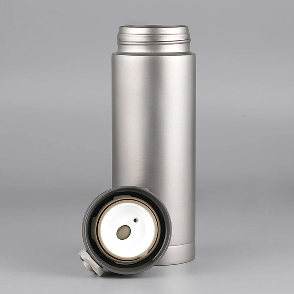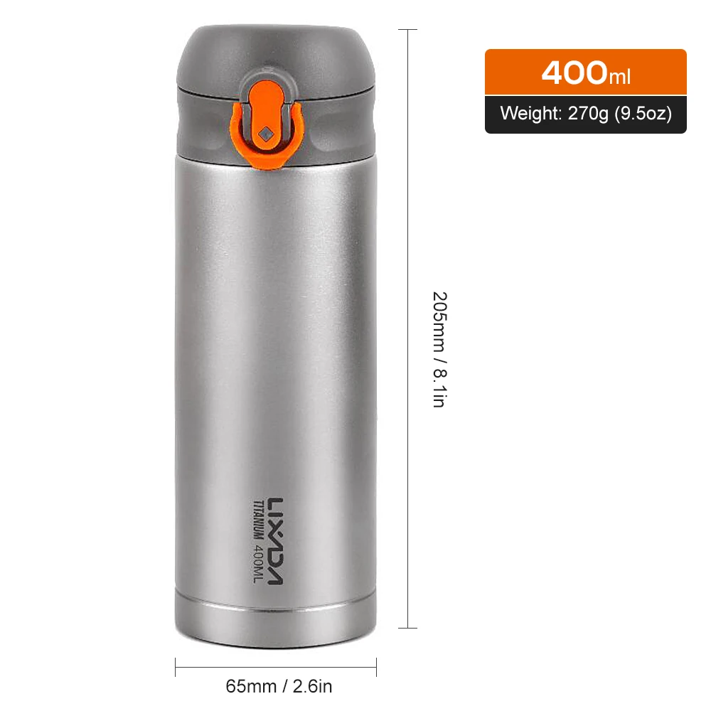 Эта титановая бутылка с вакуумной изоляцией помогает сохранять напитки холодными или горячими в течение нескольких часов. С помощью кнопки нажатия бутылка герметична и удобна в использовании. Отлично подходит для активного отдыха и занятий спортом.