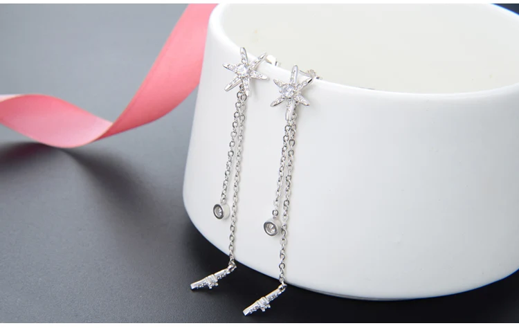WEGARSTI длинные висячие серьги с подвесками в виде морской звезды для женщин, свадебные серьги из настоящего серебра 925 пробы, ювелирные украшения, подарок на помолвку