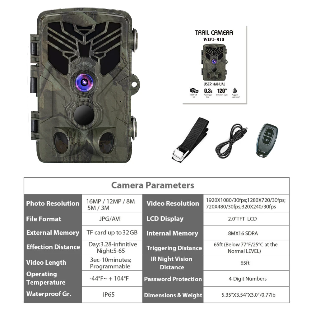 HD Беспроводная камера для мобильного телефона с Wi-Fi, 20MP 1080P, камера для охоты, инфракрасная камера для ночного видения, водонепроницаемая камера