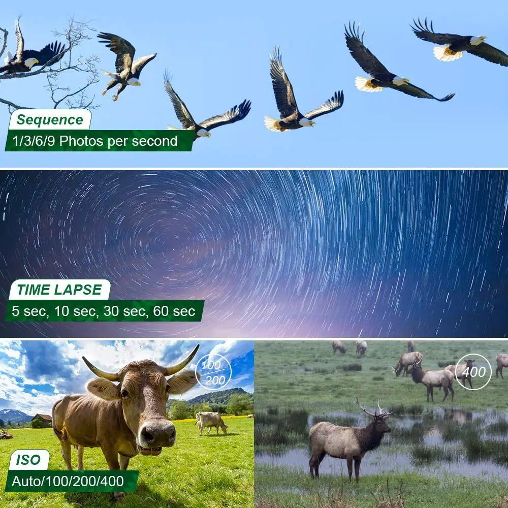 Характеристика 1. Высокое качество изображения (чип CMOS 20 миллионов пикселей, съемка 6500 × 4800 пикселей, и один кадр, Опциональные снимки 1-9) 2. Быстрое время отклика (менее 0,3 секунд от обнаружения мишени до съемки) 3. Сверхдлительное время работы в режиме ожидания (ток в режиме ожидания меньше 0,2 мА, с использованием перезаряжаемой литиевой батареи может работать в течение 2 недель при нормальной температуре, была запись-20 ℃, 45 дней в режиме ожидания) 4. Записываемое видео (видео 1960*1080 пикселей; 960*720p 30 кадров/сек; Длина видео 1 секунду-60 секунд опционально) 5. Дизайн сверхмаленького размера (сильное маскирование) 6. Используйте TF-карту для записи (очень удобно и дешево, максимальная поддержка 64 Гб TF-карты) 7. Другие особые случаи, чтобы автоматически принимать доказательства 8. Без мигания в ночное время (без вспышки, используйте Встроенный инфракрасный светодиодный светильник при ночной съемке, без вспышки при съемке, не легко разоблачить и упустить) 9. Используйте аккумулятор AA (дешевый и простой в замене) Применение: 1. Автоматическое обнаружение полей 2. Обзор инфракрасной камеры дикой природы 3. Домашнее противоугонное удостоверение 4. Офисное противоугонное удостоверение 5. Сертификат противоугонной системы для супермаркетов небольшого и среднего размеров Камера WiFi810 Trail с WLAN Датчик изображения: 20 мегапикселей, цветной CMOS Карта памяти TF до 64 ГБ Объектив: F = 1,8; FOV = 90 ° Размер: 135 мм * 90 мм * 76 мм Дисплей: 2,0 дюйма TFT Режим: камера, видео, камера, видео Диапазон обнаружения PIR: 120 градусов Расстояние ночного видения: 65 футов/20 метров ИК светодиодный: 42 Infared светодиодный s Радиус действия PIR: 65 футов/20 метров Скорость триггера: 0,3 секунды ПИР интервал: 1/5/10/30 сек/мин (по умолчанию 1 сек) Разрешение изображения: 20 МП, 16 Мп, 12 МП Несколько фотографий на одном обнаружении: 1/3/6/9 Разрешение видео: 1080P/720P/VGA Формат файлов: JPEG/AVI Дата и время печати: да Отпечаток фазы Луны: Да Воздействие: Авто/100/200/400 Пароль для безопасности: 4-контактный цифровой код Ток в режиме ожидания: 0,2 мА Время работы в режиме ожидания: 6 месяцев Интерфейс: выход телевизора, USB2.0, карта Micro SD, внешний штекер 6 В 1,5 А Способ фиксации: ремень, Крепление для штатива Обнаружение движения: низкий, средний, высокий Рабочая температура: -20 ~ 70 ℃(-4 ~ 158 ℃) Питание: 8 × Батарейки АА Таймер: Да Водонепроницаемый: IP66 Язык: En/FR/DE/ES/RU/DK/NL/PL/PT/SE/IT/FI/JP Сертификат: FCC,CE,RoHS