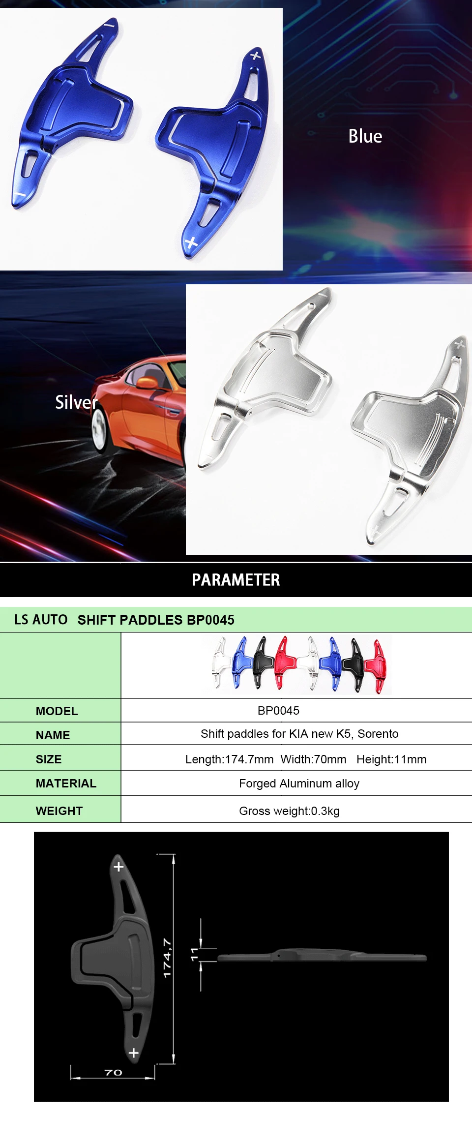 Это список для 2 частей из алюминиевого сплава, расширитель рычага переключения передач DSG. Уникальный спортивный стиль Цельнокройное весло для ugrade стайлинга вашего автомобиля. Изготовлен из высококачественного алюминия, гладкая отделка, превосходное управление на ощупь. Это отличное расширенное модифицированное устройство для вашего любимого автомобиля.